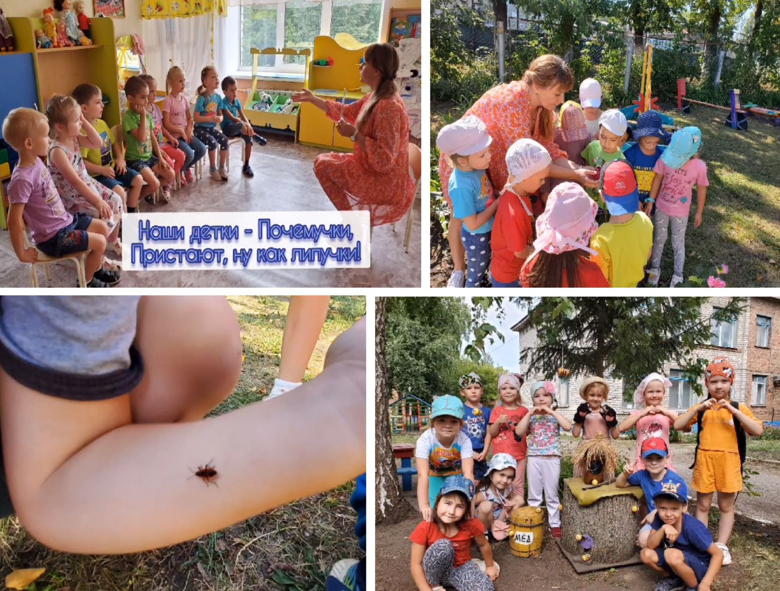 При помощи карты-схемы экологической тропы, проходящей по территории детского сада («Пасека», «Деревенское подворье», «Муравейник», «Огород», «Академия букашек», «Паутинка», «Грибная поляна», «Птичий домик»), дошкольники отправились искать ответы на вопросы: почему пчела кружит над цветком, кому нужны насекомые, они вредные или полезные? Рассматривая энциклопедию о насекомых, «Маленькие почемучки» узнали как происходит развитие разных живых существ.