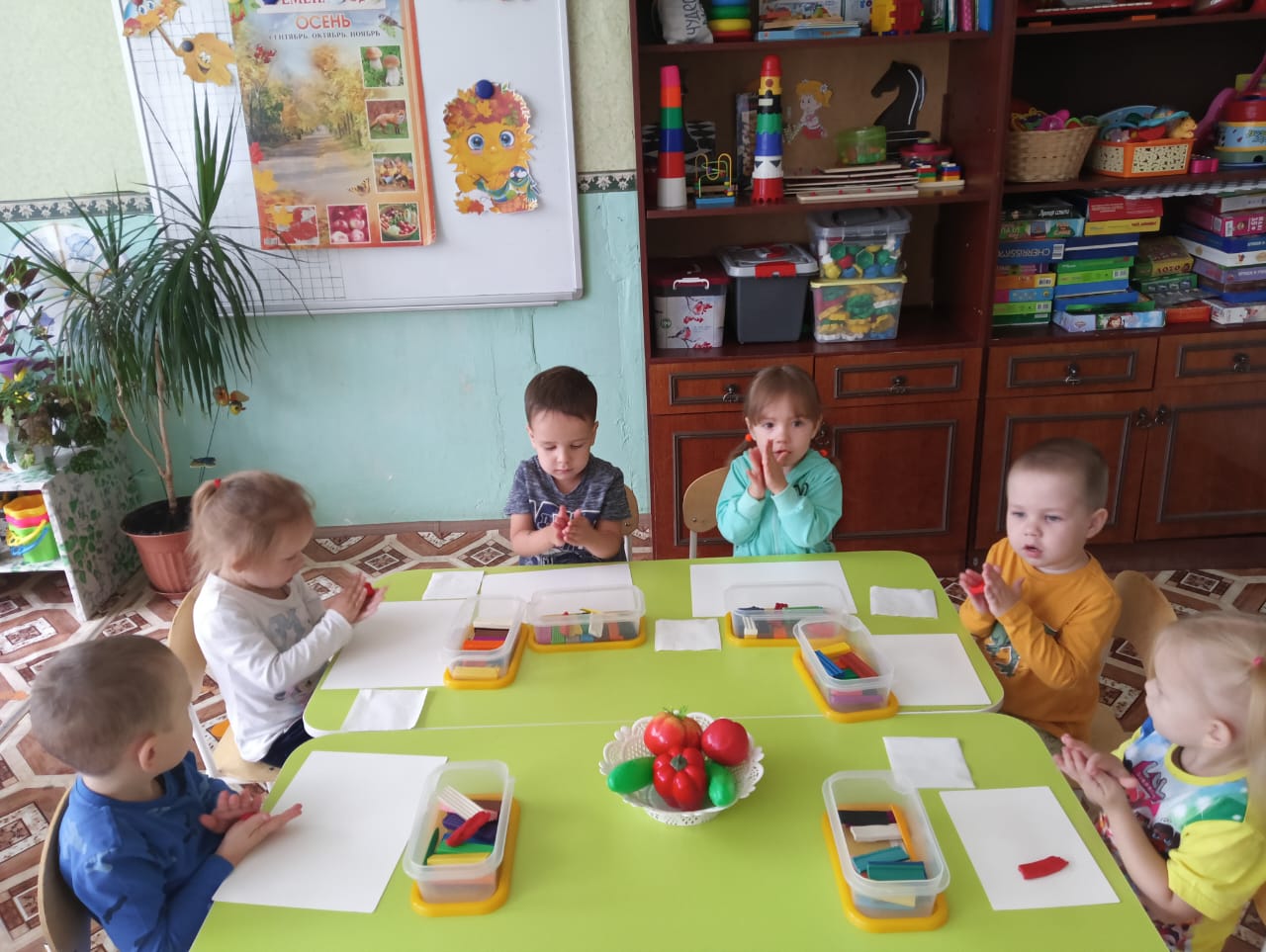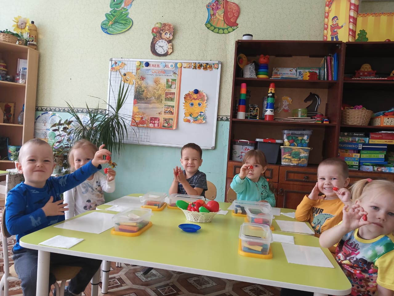 На занятиях по изодеятельности дети лепили помидор такой, как в огороде.