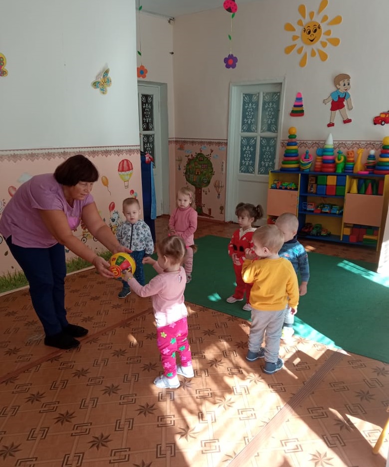 Играли в игру «Назови свое имя». Дети встали в круг и из рук в руки передавали мяч. Тот, у кого он в руках, называл своё имя.