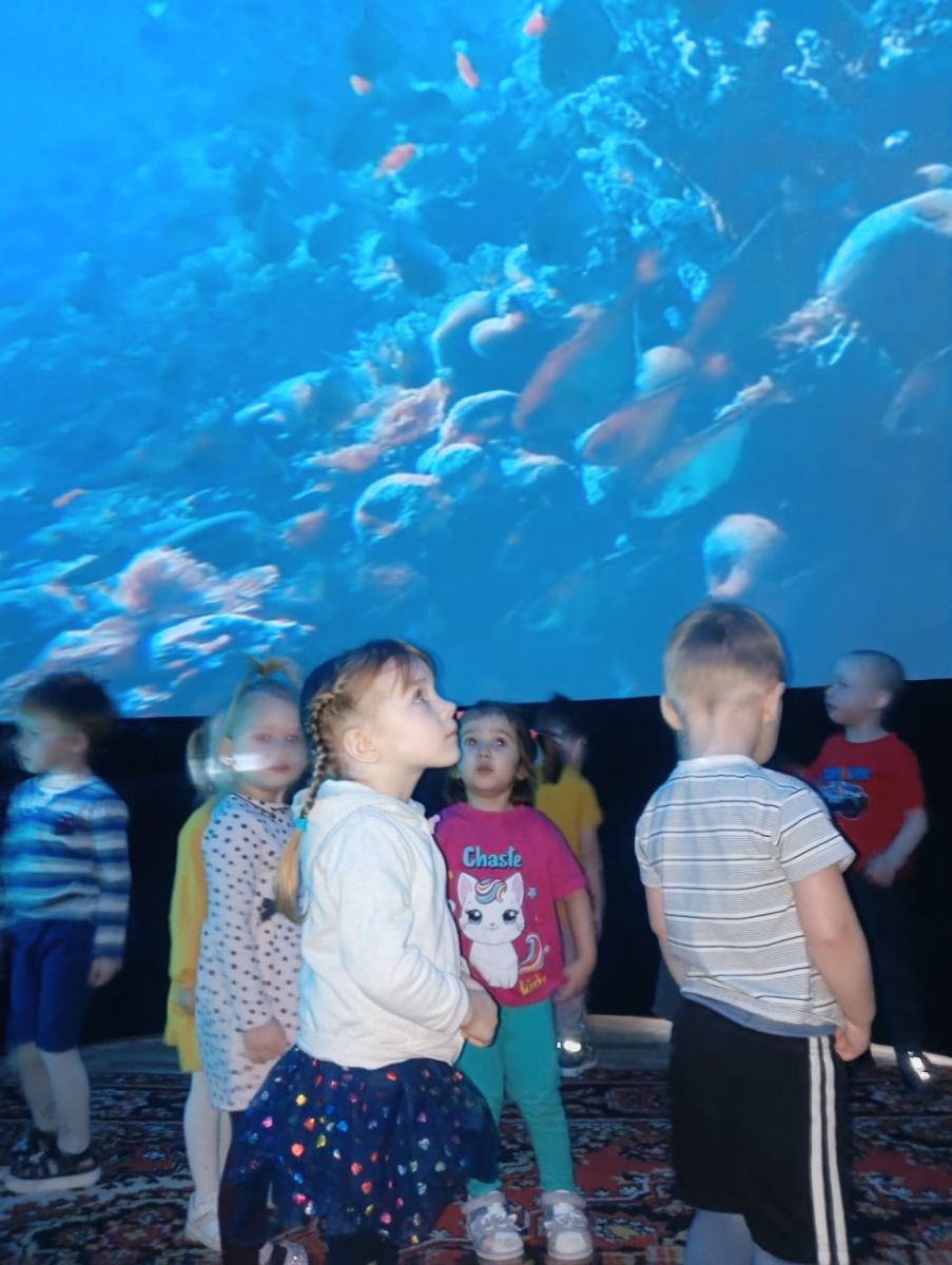 Ребята совершили захватывающее путешествие в удивительный подводный мир. Им было рассказано о царстве миллионов, не похожих ни на что обитателей: необычные растения и водоросли, разноцветные рыбки и грозные акулы, задорные дельфины и гигантские киты...