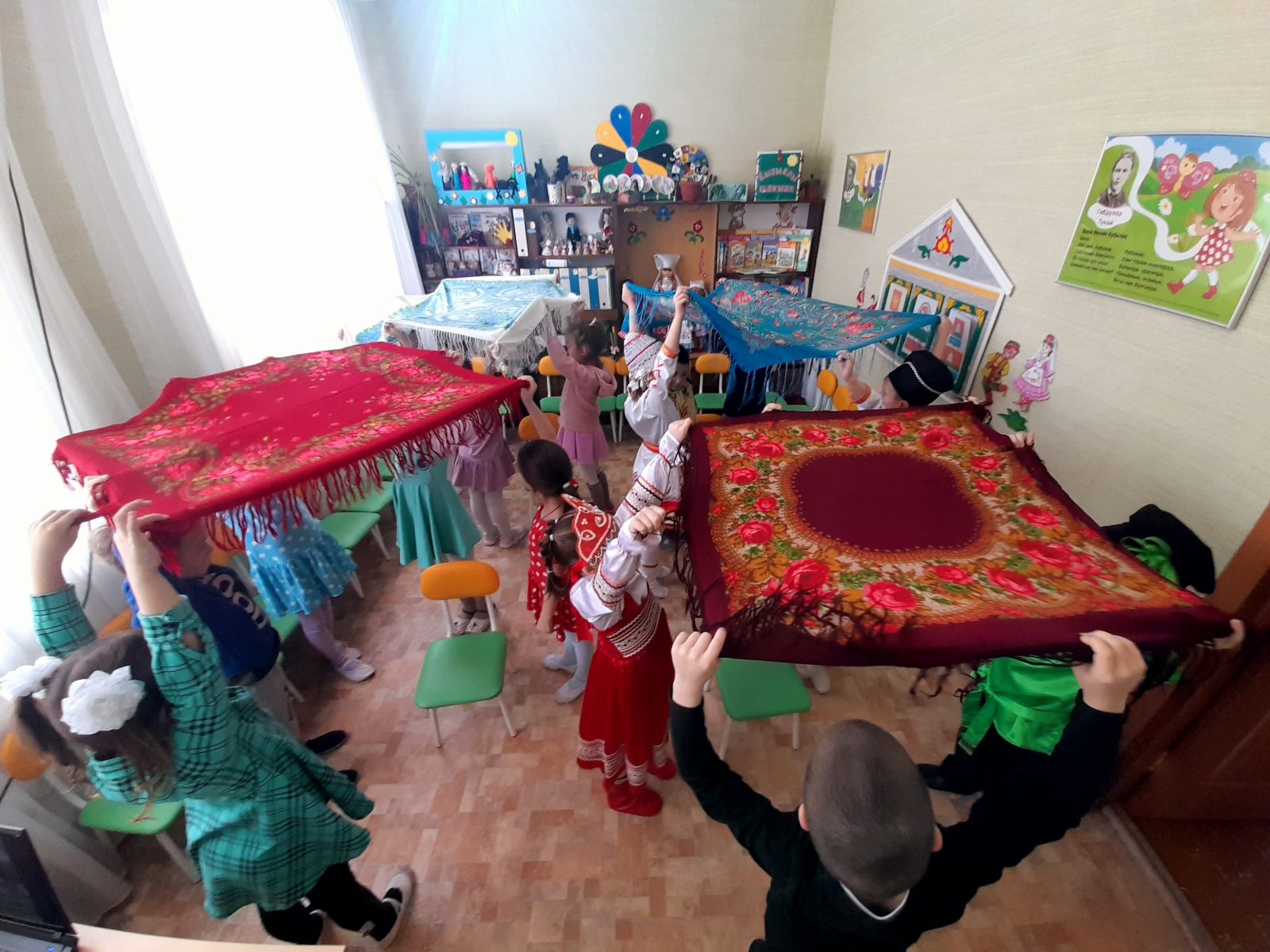 На празднике встречали детей куклы в национальных костюмах народов Поволжья, обогатили знания о различных предметах одежды, обуви, головных уборов. Учились различать татарский, русский, башкирский, чувашский народные костюмы, выделяя их характерные элементы. Отдохнули и порезвились дети в подвижных народных играх. Поиграли в русскую народную игру «Заря-заряница», татарскую народную игру «Зәңгәр чәчәк”, башкирскую народную игру “Юрта”, чувашскую игру “Птицы”. В ходе мероприятия дошкольники прочитали стихи о родном крае, просмотрели драматический спектакль «Тылсымлы сүз» по мотивам рассказа Валентины Осеевой «Волшебное слово» в исполнении ребят подготовительных групп.