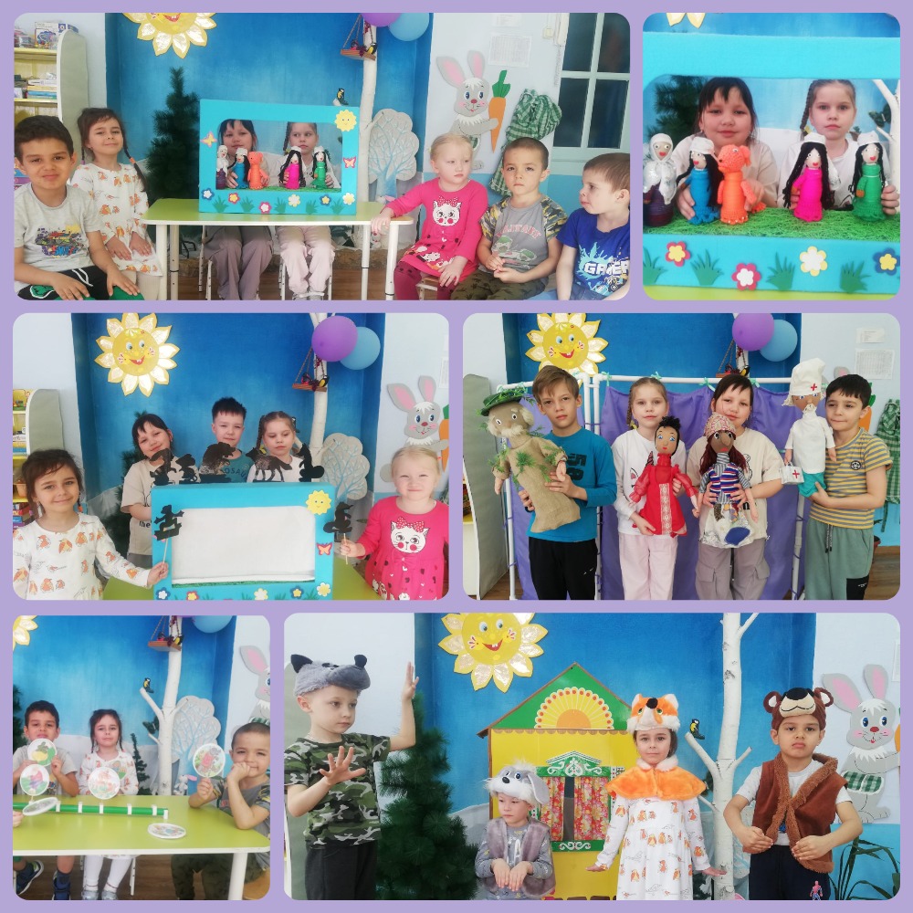 Дети с удовольствием познакомились с различными видами театра и разыгрывали спектакли в группе; смотрели презентации, посвящённые теме недели. Ребята отгадывали загадки, узнавали инструменты по звуку, играли в подвижные игры, игры-драматизации по русским народным сказкам с использованием театральных атрибутов.