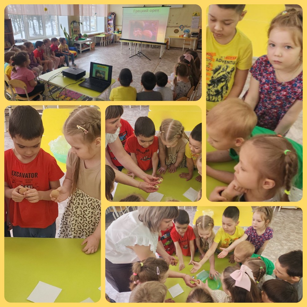 27.03.2024 г. Сегодня воспитанники старшей группы "Солнышко" знакомились с грецким орехом.