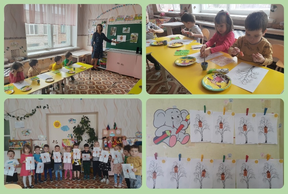02.04.2024 г. Наша группа «Капельки» (воспитатели: Савина О.А., Моргачева Н.) также приняла участие в природоохранной акции, в рамках санитарно-экологического двухмесячника в РТ «Эковесна-2024», где первая неделя обозначена как «Помоги пернатым» и, как оказалось, что именно в это время года 1 апреля отмечают «Международный день птиц». Чтобы помочь пернатым встретить весну, в нашей группе «Капельки» был запущен флешмоб среди родителей воспитанников «Милосердие к пернатым друзьям», где семьи изготовили совместно с детьми и развесили кормушки в разных районах города: в парках, скверах, на придомовых территориях. В группе дети во время беседы узнали о важности заботы о птицах в холодный сезон, когда они нуждаются в помощи и участии людей. Прослушали стихотворение А. Барто «Птички», рассматривали иллюстрации с кормушками и скворечниками. Поиграли в подвижные игры «Птички в гнёздышках», «воробушки и автомобиль». Провели аппликацию «Кормушки», где дети с удовольствием украшали кормушки для пернатых друзей. Пусть мы ещё маленькие, но уже знаем, что необходимо помогать птицам зимой и в межсезонье. Ребята очень старались и у каждого кормушка получилась яркая интересная.