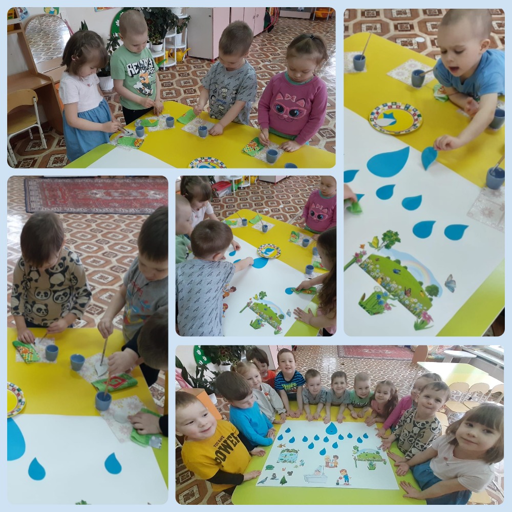 В заключении выполнили коллективную аппликацию "Волшебная капелька".