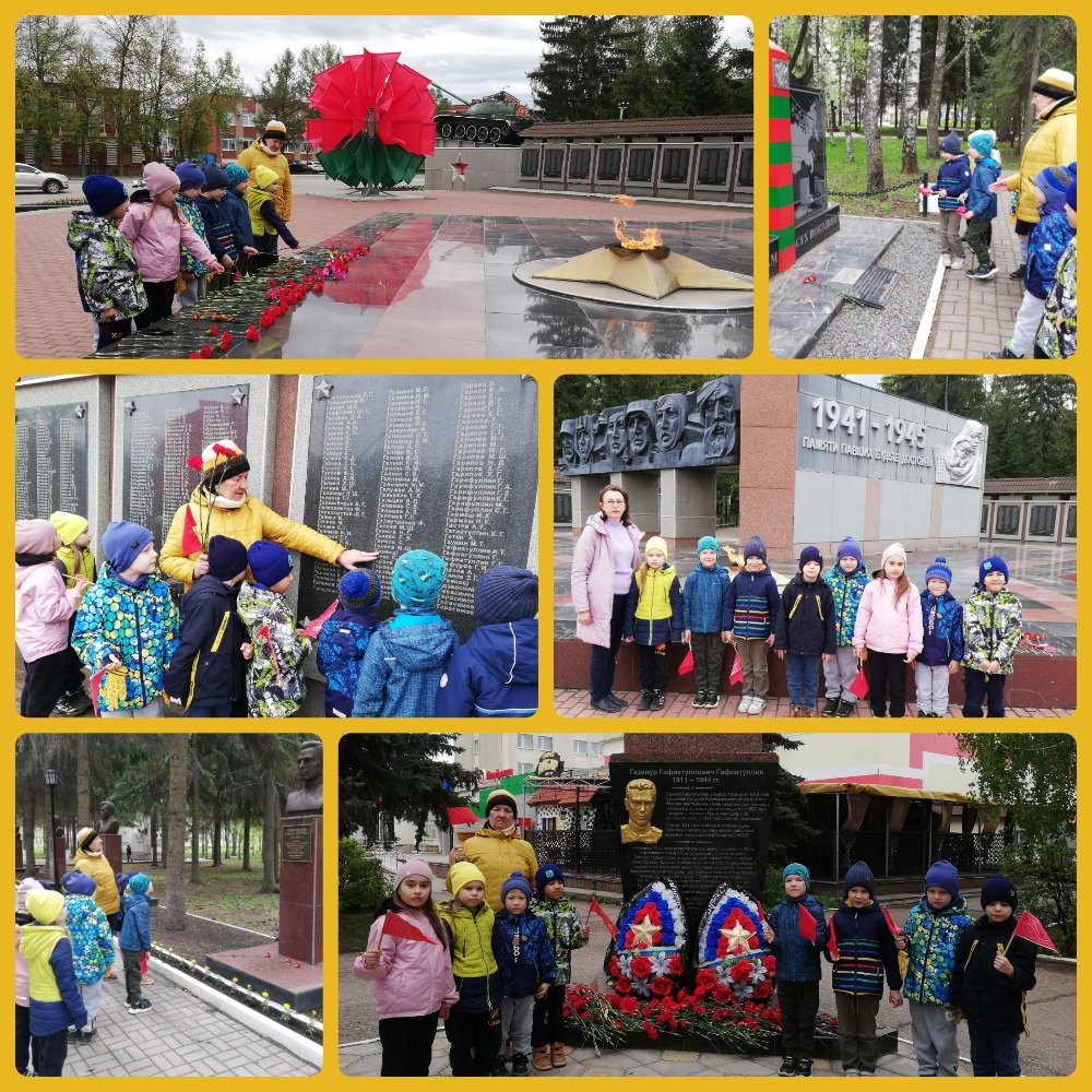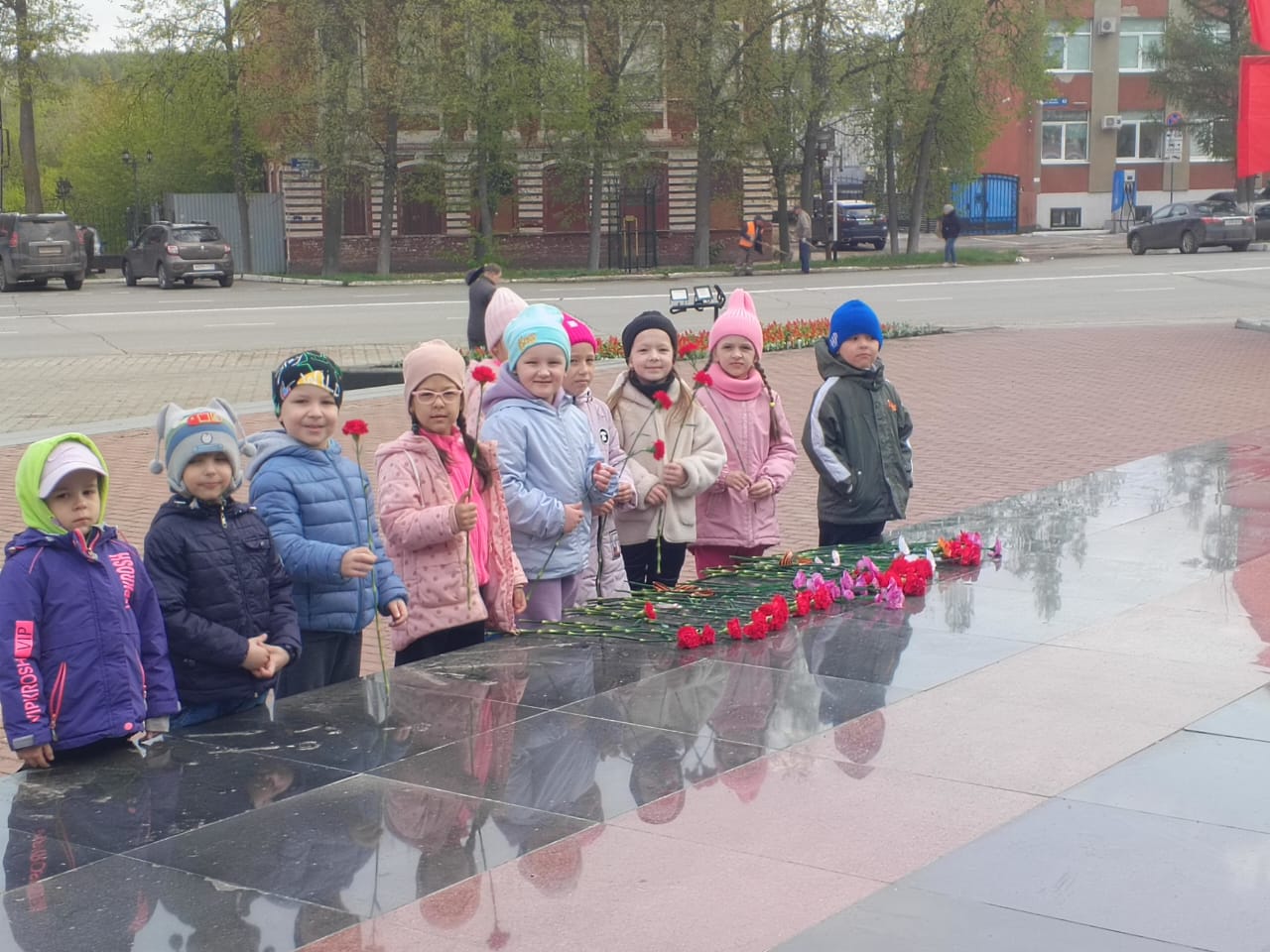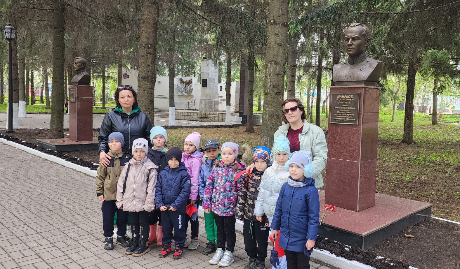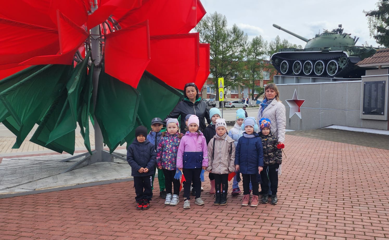День Победы — один из самых главных и светлых праздников. Наша обязанность передать память нашим потомкам о Победе, чтобы они знали и помнили, какой ценой она досталась. В преддверии праздника Дня Победы воспитанники старших групп "Солнышко", "Ромашки" и подготовительной группы "Радуга" почтили память воинов, погибших в Великой Отечественной войне, возложением цветов к "Вечному огню".