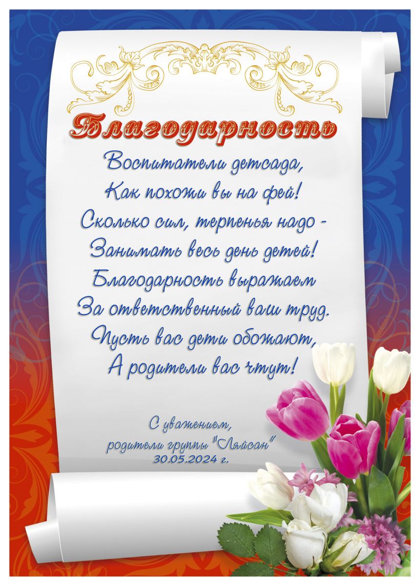 С уважением, коллектив родителей выпускников группы "Ляйсан".