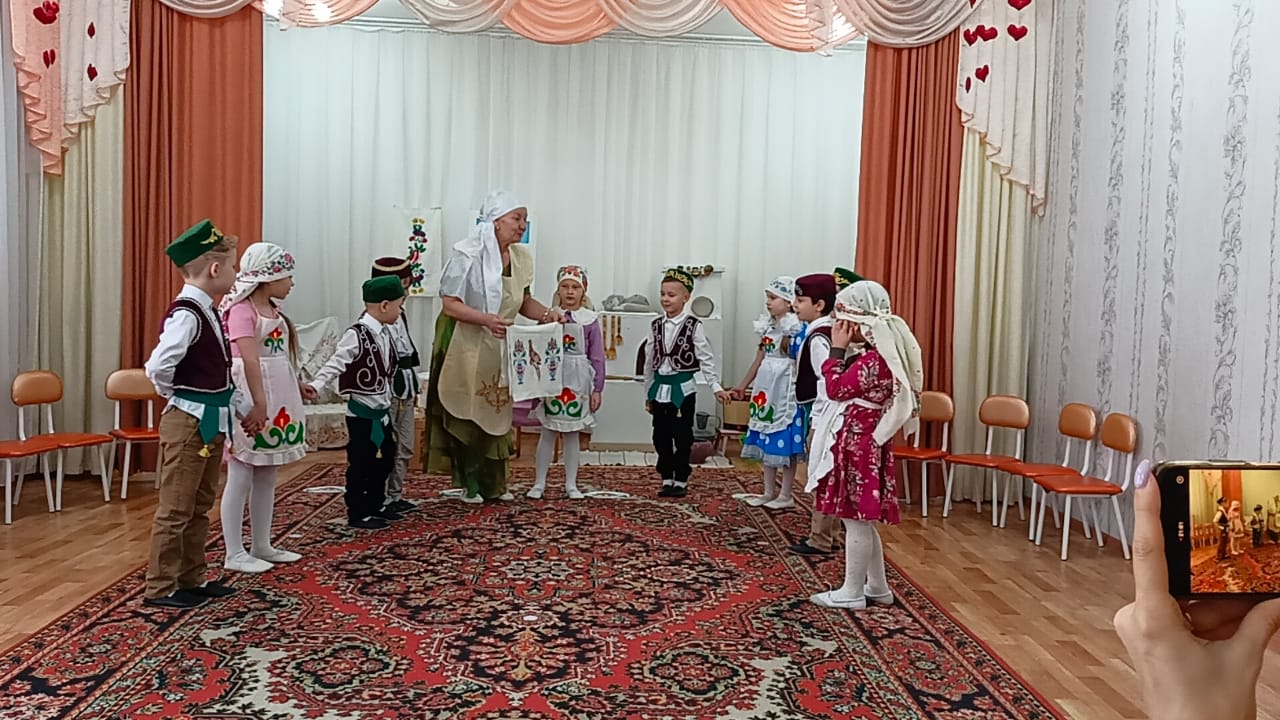 С особой теплотой мы вспоминаем утренники. Все они проходили как театральные представления. Всем запомнился "Аулак өй". Наши дети и мы соприкоснулись с культурой, традициями татарского народа. Также мы побывали в кафе "Мамина улыбка", в котором забыли о своих проблемах, заботах. Очень нашим деткам понравились спортивные соревнования, проводимые на 23 февраля.