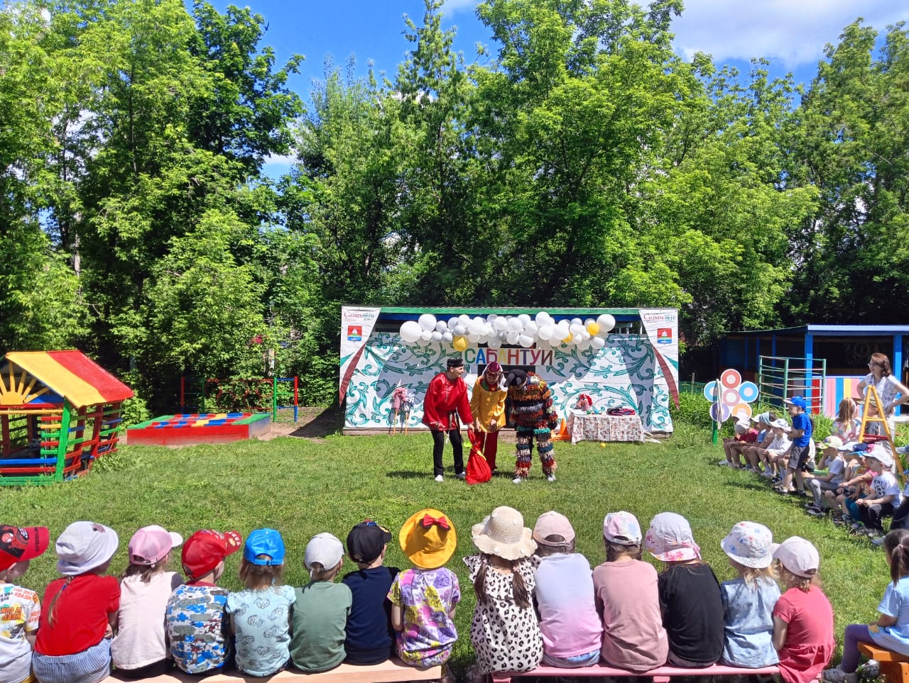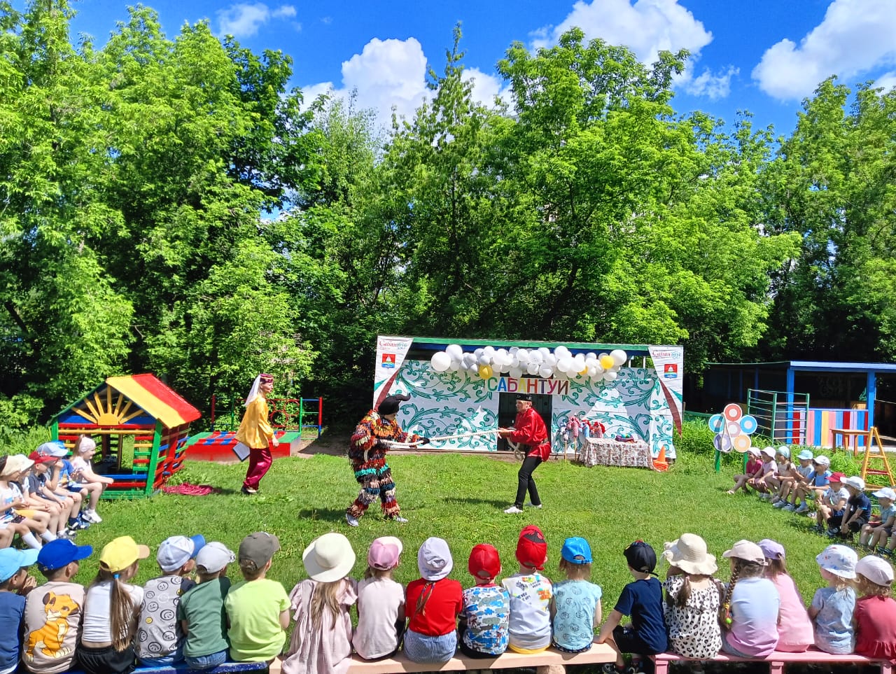 Заливистый детский смех разносился далеко за пределы участка «Сабантуйская поляна». Дошкольники получили заряд бодрости и хорошего настроения.