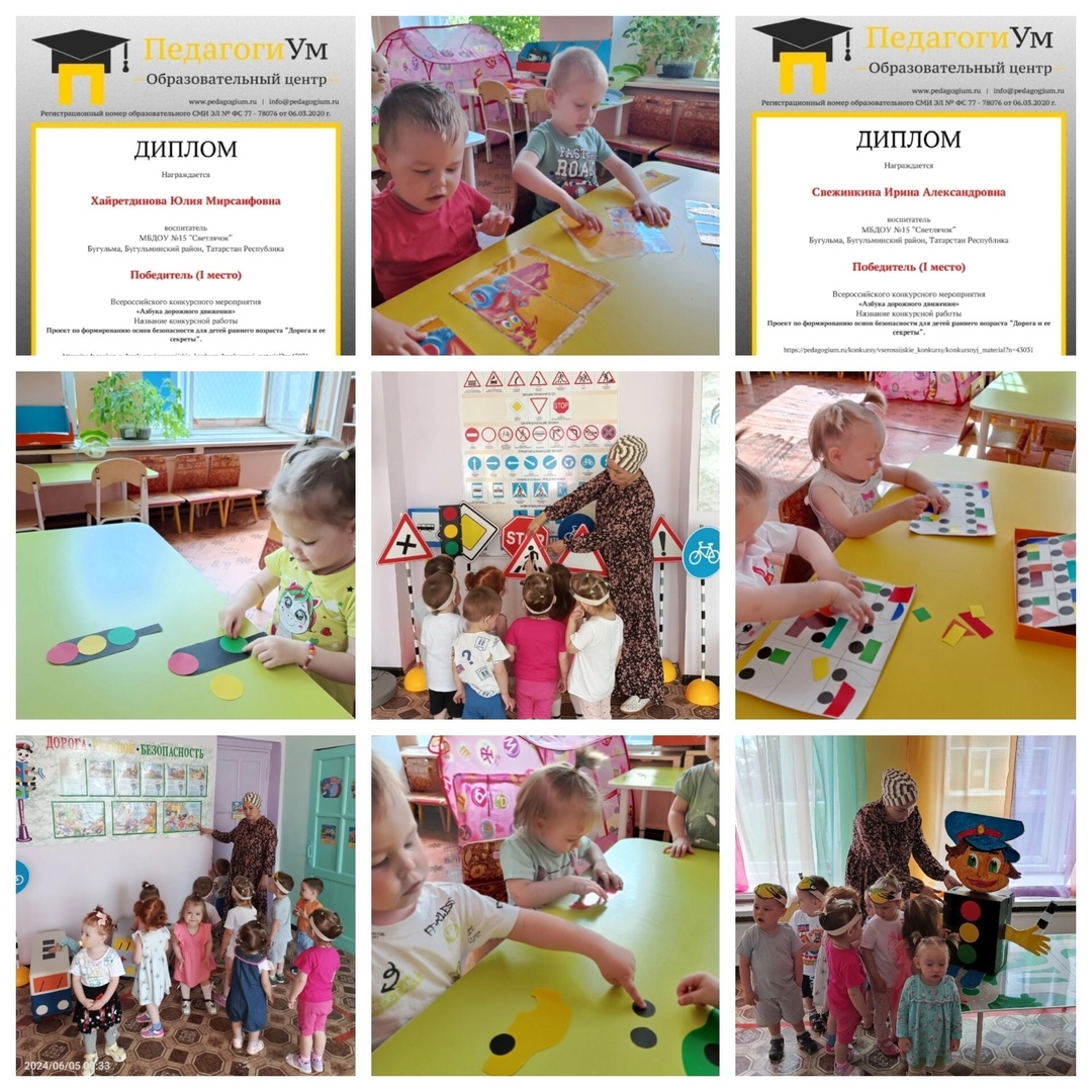 Опубликовано: 12.07.2024В МБДОУ 15 "СВЕТЛЯЧОК" воспитатели группы "Неваляшки" (Хайретдинова Юлия Мирсаифовна, Свежинкина Ирина Александровна) провели проект по формированию основ безопасности для детей раннего возраста "Дорога и её секреты".