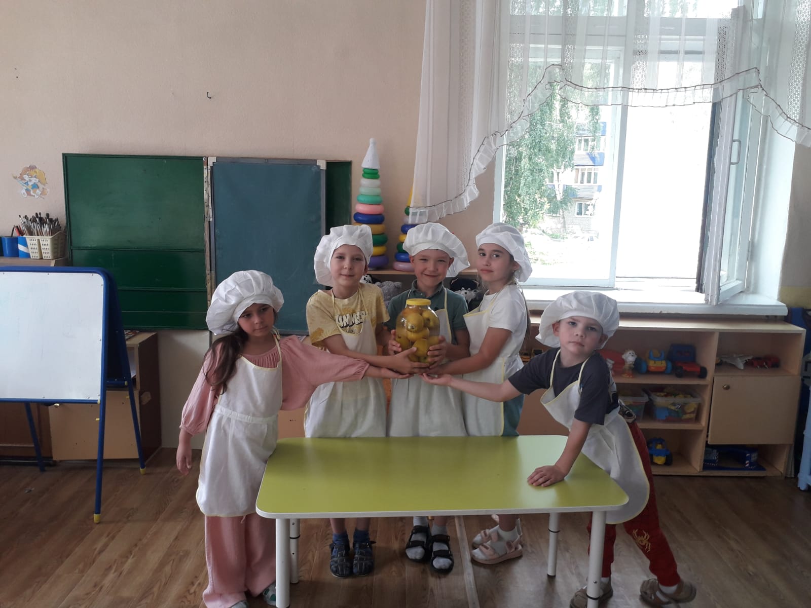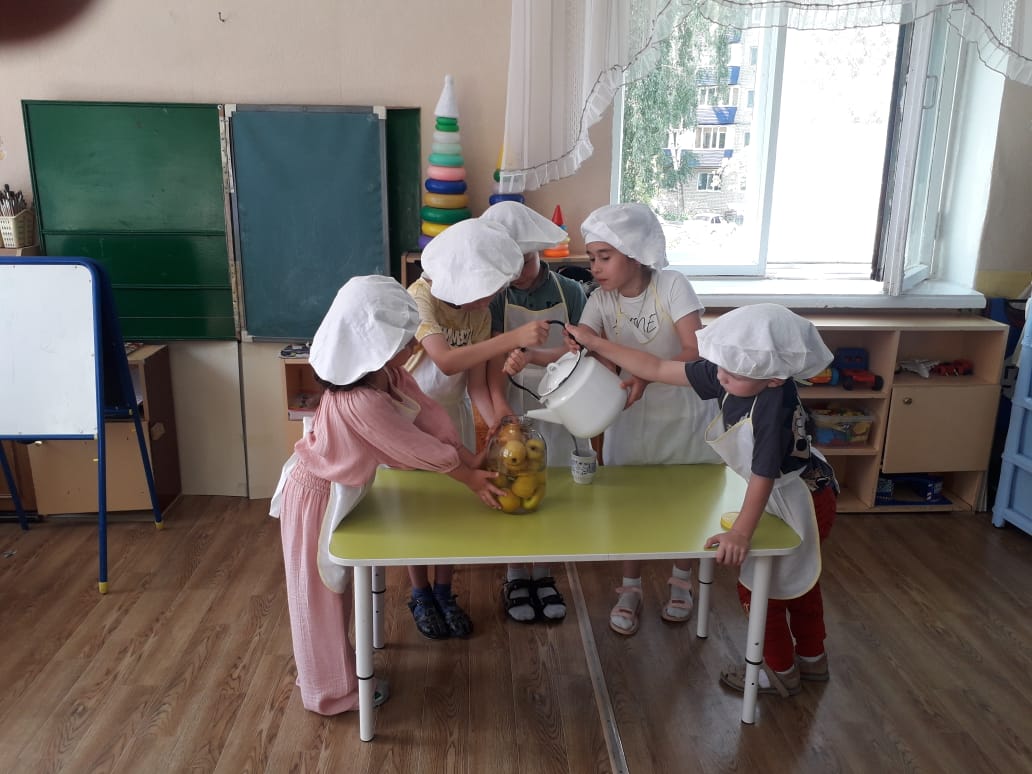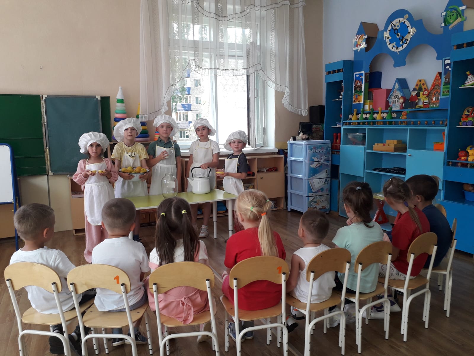 Поскольку начался яблочный сезон, ребята назвали, что можно приготовить из яблок, перечислив все варианты: варенье, повидло, пастилу, пироги, сок, яблочный компот. И сами приготовили такой вкусный и замечательный напиток!
