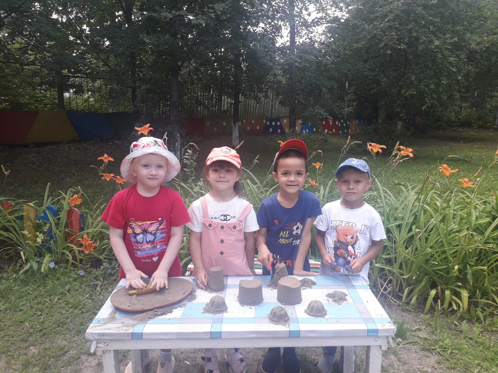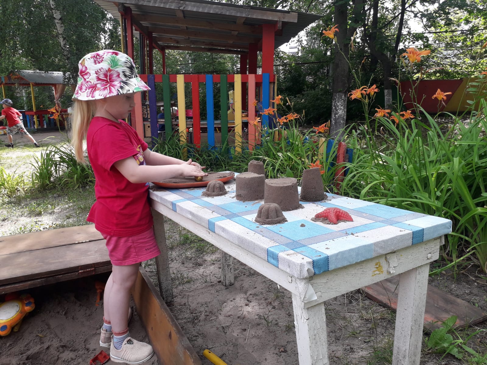 Ребята также узнали, что сухой и влажный песок обладает разными свойствами: мокрый песок лепится, из него можно лепить разные фигуры; сухой песок рассыпается.
