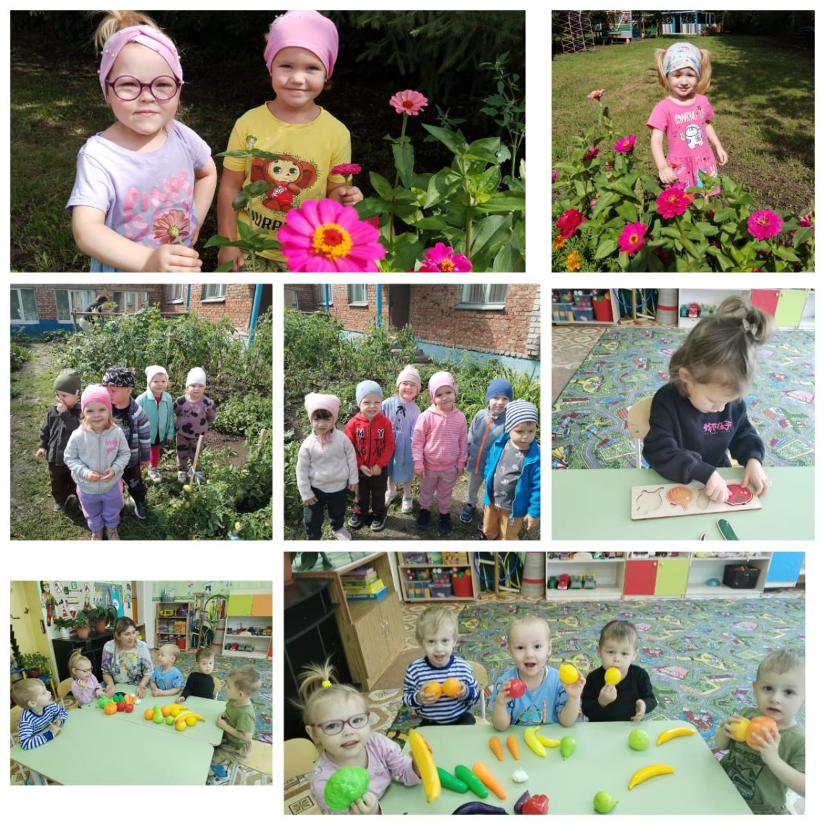 С воспитанниками была проведена игра-путешествие с таким же названием, которая началась с цветочной клумбы, где девочки любовались красивыми цветами, подаренными летом, рассматривали и отгадывали загадки о цветах. Ещё наши малыши ходили на экскурсию в огород. Там они продолжили знакомство с подарками лета — овощами, рассматривали их.