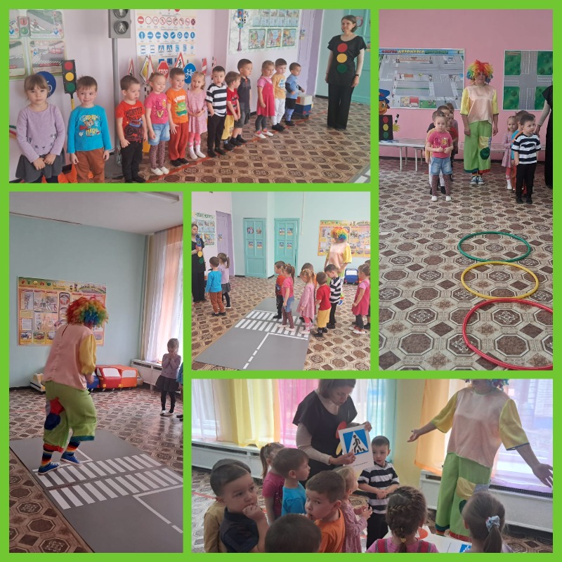 Ребята вместе со Светофором отправились в город правил безопасного поведения на дорогах и встретили клоуна Стёпу, который о правилах ничего не знал. Дети научили его правильно переходить проезжую часть, показали ему как выглядит дорожный "Пешеходный переход", поиграли в игры "Собери светофор", "Красный, жёлтый, зелёный".