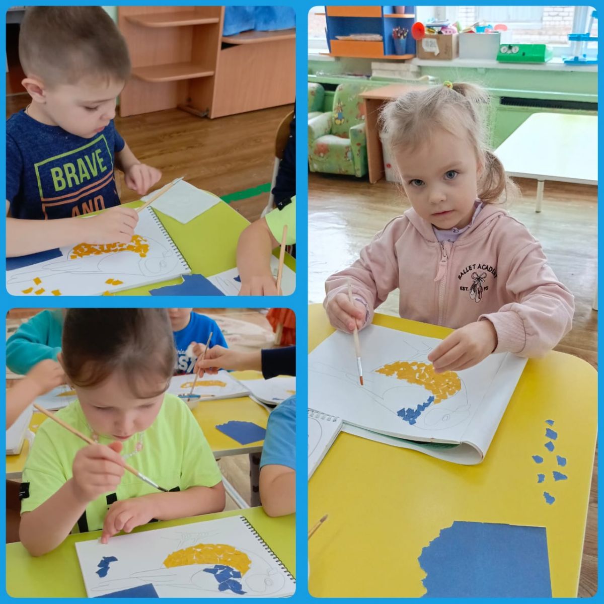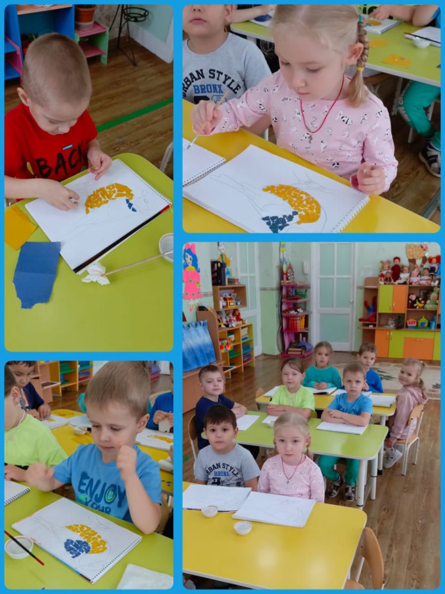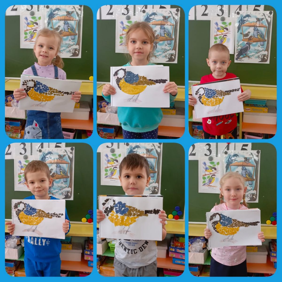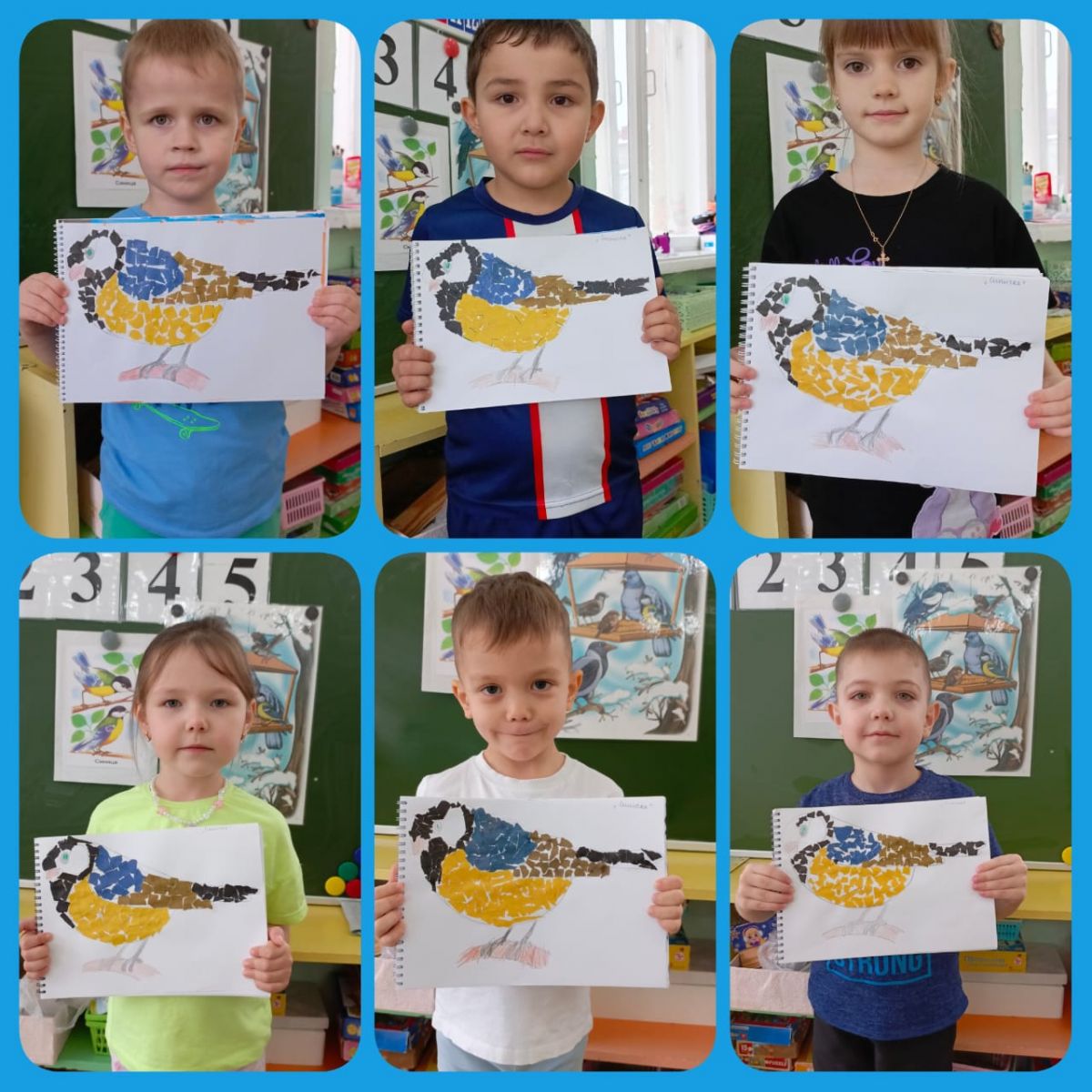 Подводя итог, ребята выполнили аппликацию "Синичка" нетрадиционным способом.