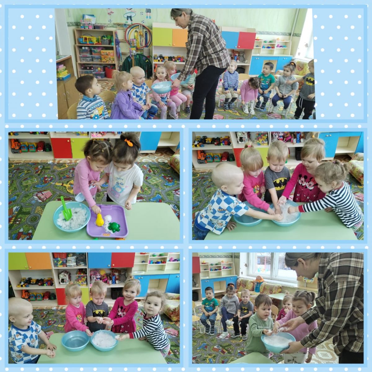 Опубликовано: 09.12.2024Во второй младшей группе "Радуга" (воспитатели Бажитова Е.Н., Мосолова Е.П.) была проведена экспериментально-исследовательская работа "Чудеса со снегом", в ходе которой дети познакомились со свойствами снега. Дети превратились в самых настоящих маленьких учёных: рассматривали снег и сделали вывод: что снег холодный, если его взять в руки — он начинает таять, вода из снега грязная, значит, снег есть нельзя!