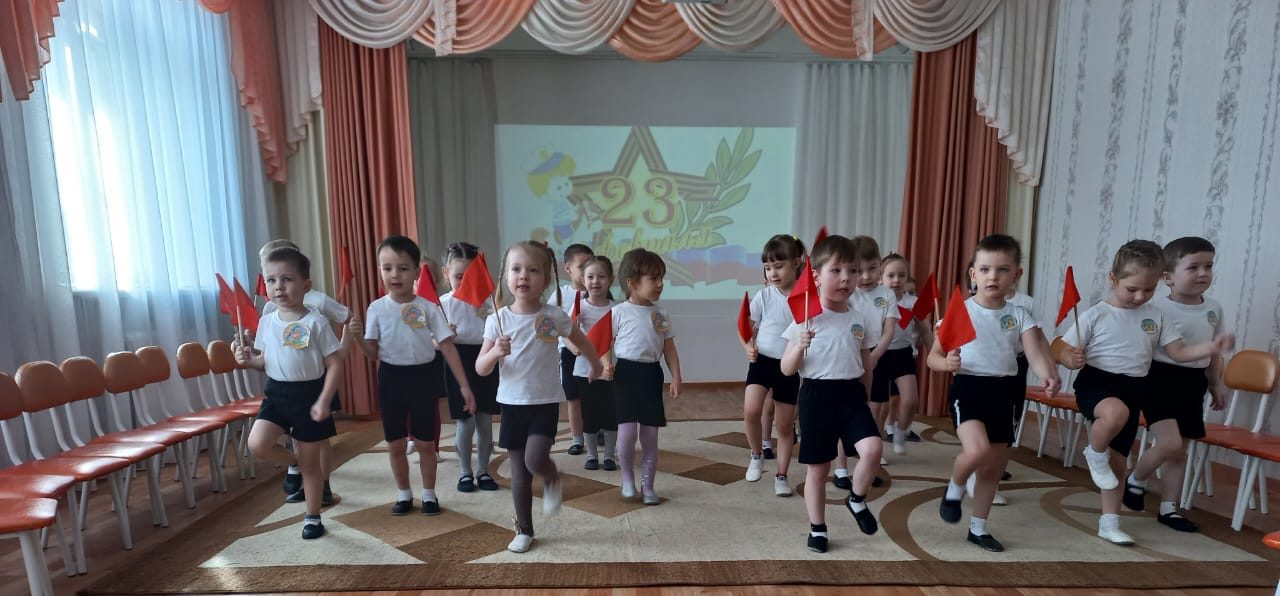 В средних группах "Пчёлки" и "Почемучки" прошло спортивное развлечение. В гости к ребятам приходил весёлый клоун Федя. Ребята участвовали в играх и эстафетах, где показали свою ловкость, силу и смекалку, выполняли упражнения, пели песни. Командный дух, смех и радость сопровождали ребят на протяжении всего мероприятия. Девочки поздравили мальчиков — будущих защитников Отечества, подарив им медали.