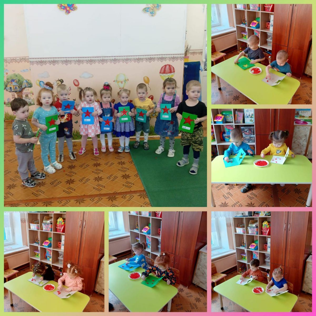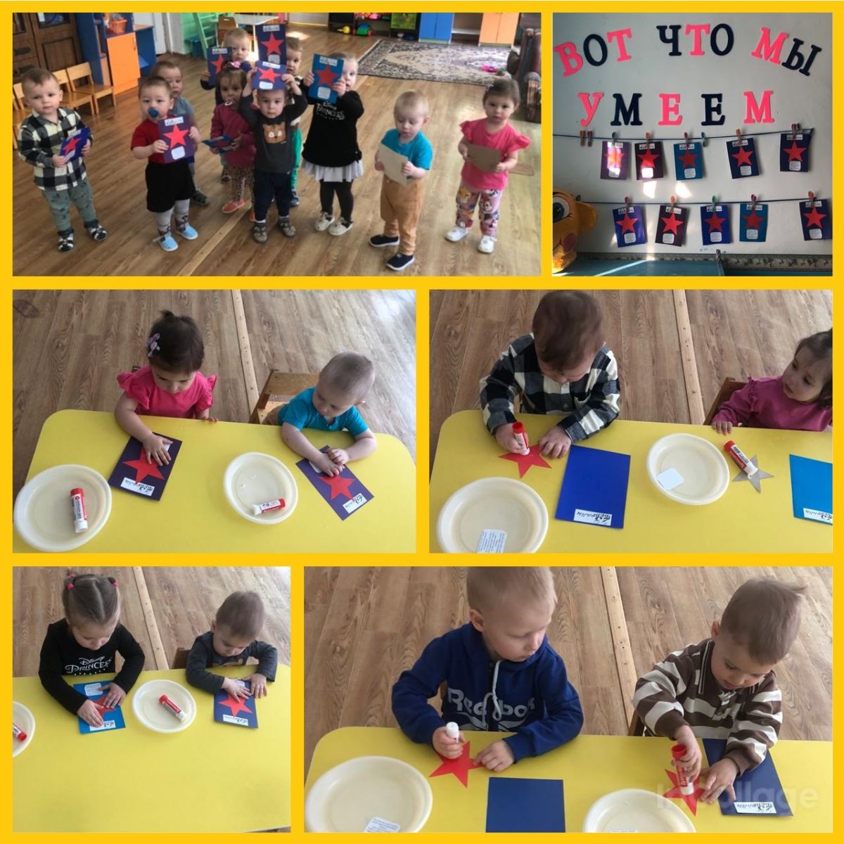 В преддверии праздника День защитника Отечества малыши первой младшей группы "Неваляшки" вместе с воспитателем (Свежинкиной И. А.) сделали открытки для любимых пап. Дети с удовольствием клеили звёзды на яркие открытки, ведь каждый из них хотел порадовать своего папу подарком.
