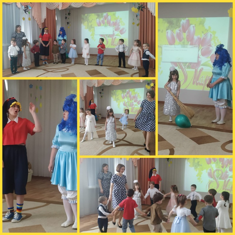 Дети не только показали, какие они замечательные помощники для своих самых дорогих и близких людей, но и научили Буратино быть аккуратным, послушным и старательным. А ещё порадовали всех гостей праздничными весенними песнями и хороводами, весело и дружно играли. Украшением праздника стали танцы "У мамочки любимой", "Кнопочка", "Детки-конфетки".