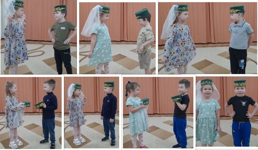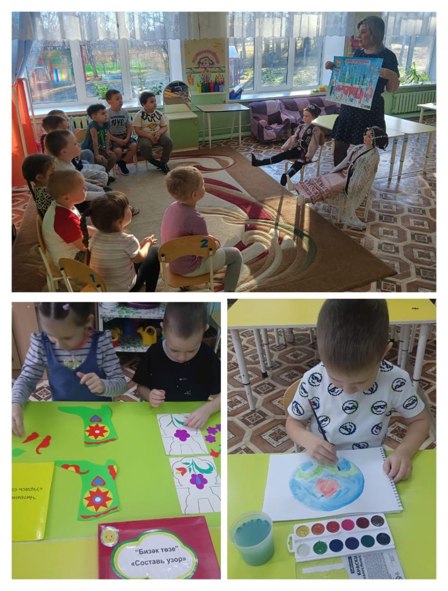 Для воспитания у детей любви к родному краю через художественные произведения воспитатели группы прочитали детям стихи Роберта Миннуллина «Волшебный курай», «Приезжайте в гости!», а стихотворение Резеды Валеевой «Тюбетейка и калфак» мальчики и девочки охотно проинсценировали.