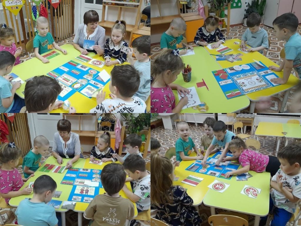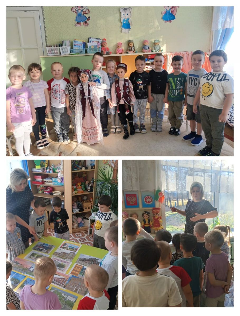 Ребята с большим интересом рассматривали иллюстрации с изображением городов Республики; флага и герба Татарстана; прослушивали гимн Республики. Рассмотрели карту родного края и узнали, чем славится каждый город в нашей Республике. А также поговорили о традициях, праздниках, национальных блюдах и одежде татарского народа.