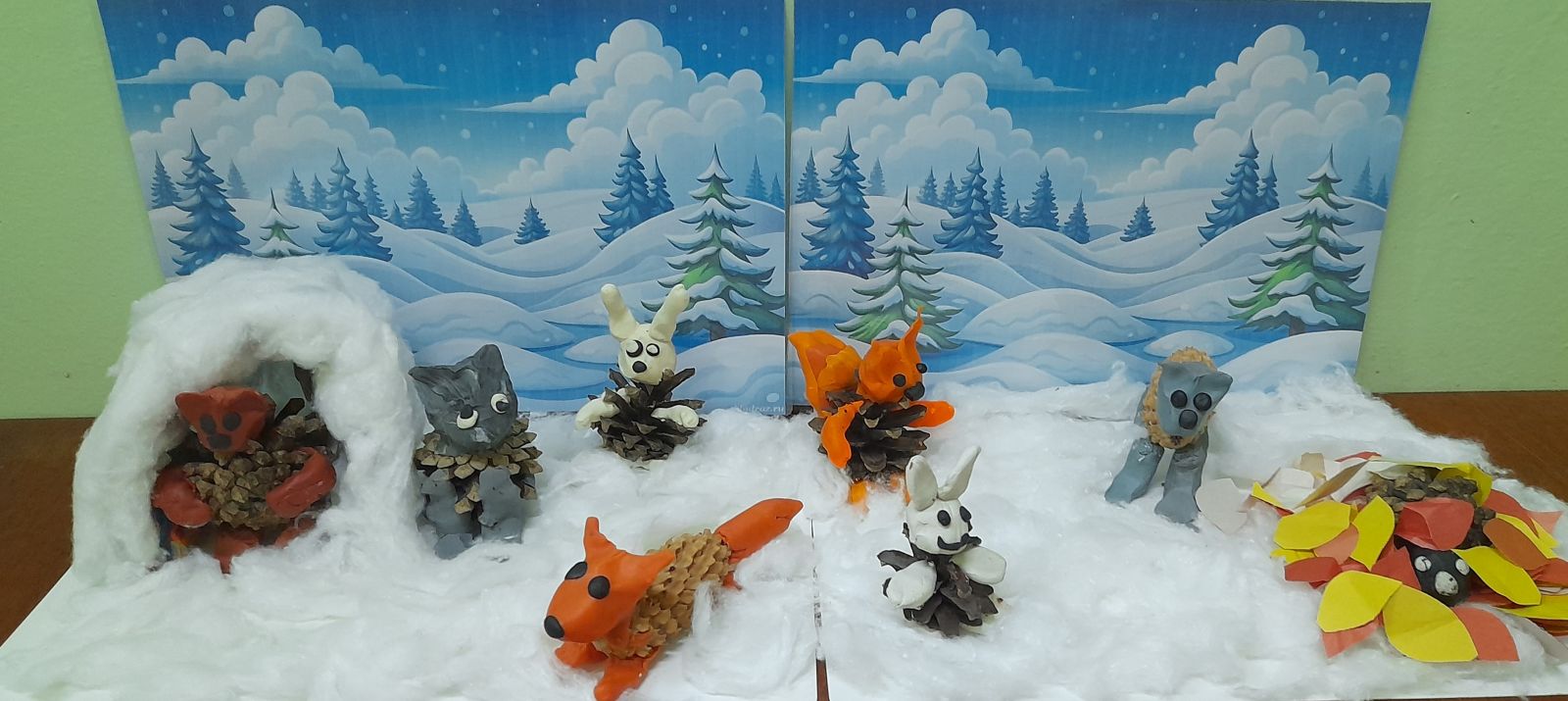 В один из дней тематической недели ребята трудились в творческой мастерской – из шишек и пластилина сделали зверей, которые живут в зимнем лесу.