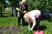 Наш "Зеленый патруль" продолжает работу по облагораживанию территории детского сада.