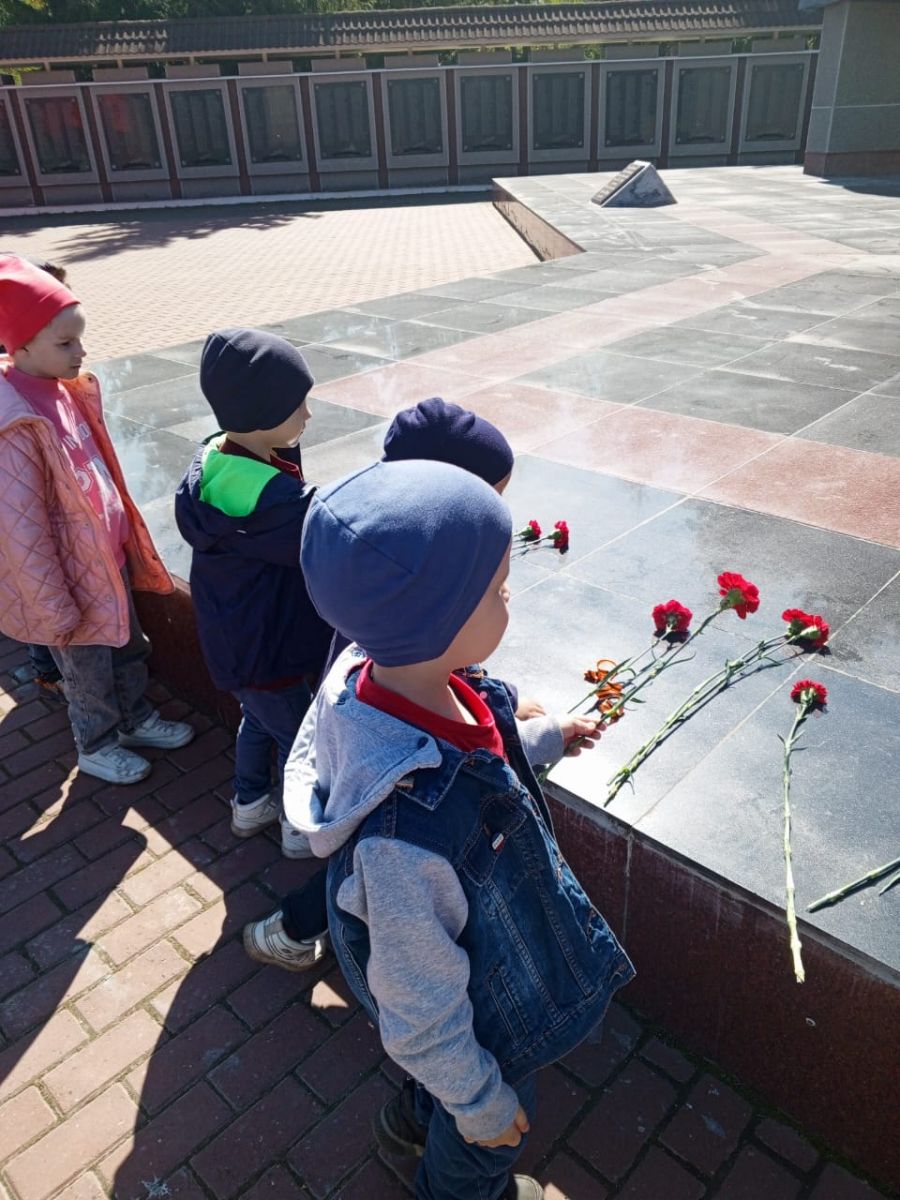 Возложение цветов воспитанниками детского сада к памятнику героям Великой Отечественной войны