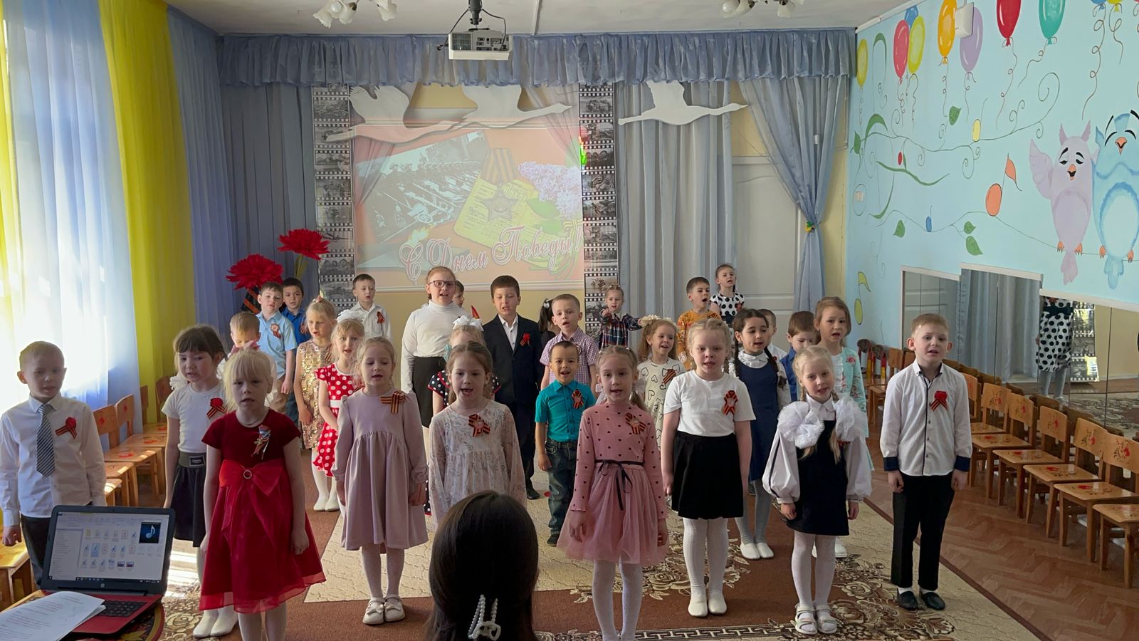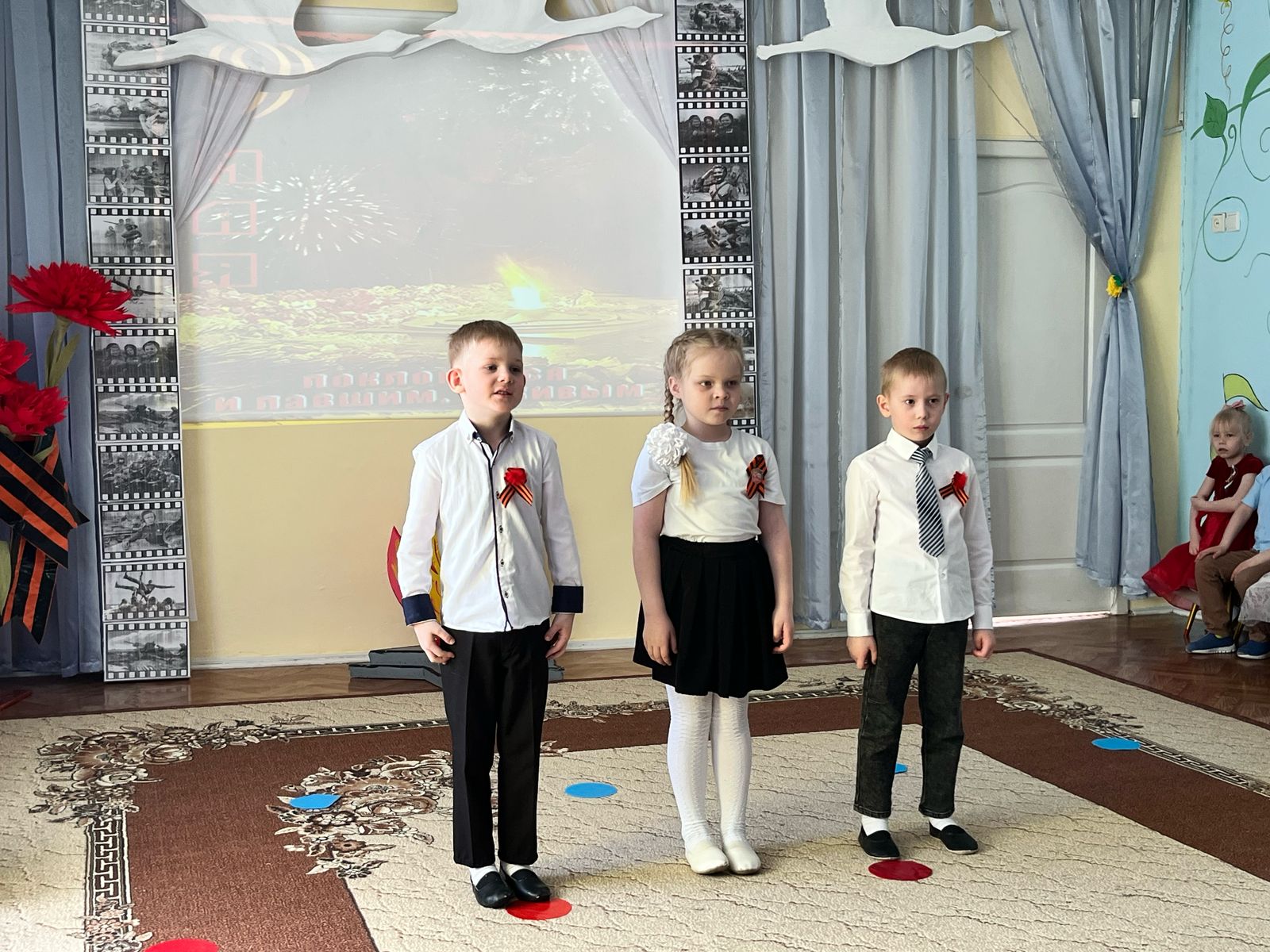 В старших и подготовительных группах прошёл утренник, посвящённый празднованию Великой Победы. Мы вспомнили события той далёкой и страшной Великой Отечественной Войны. Пели песни о Победе, читали стихи, танцевали. Дети принесли на праздник портреты своих прапрадедушек, участников ВОВ. Рассказывали о своих Героях. Пока мы помним и чтим своих предков, завоевавших Победу в этой страшной войне, мы можем передать своим детям высочайшие ценности - патриотизм и любовь к своей Родине.