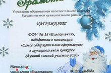 Вот и заканчивается зима! Жаль с ней расставаться! Но что поделать, время быстротечно и нам не подвластно. А ведь это время года самое любимое у детей. И мы, педагоги стремимся, чтобы оно проходило весело, радостно, познавательно. Прилагаем все силы, чтобы детям было интересно. Каждый год в нашем саду проходит конкурс на лучший зимний участок. А затем и на городском уровне тоже. В намеченный срок работа по благоустройству наших участков закипела. Наш труд не прошёл даром - в конкурсе мы стали победителями в номинации «Самое содержательное оформление».