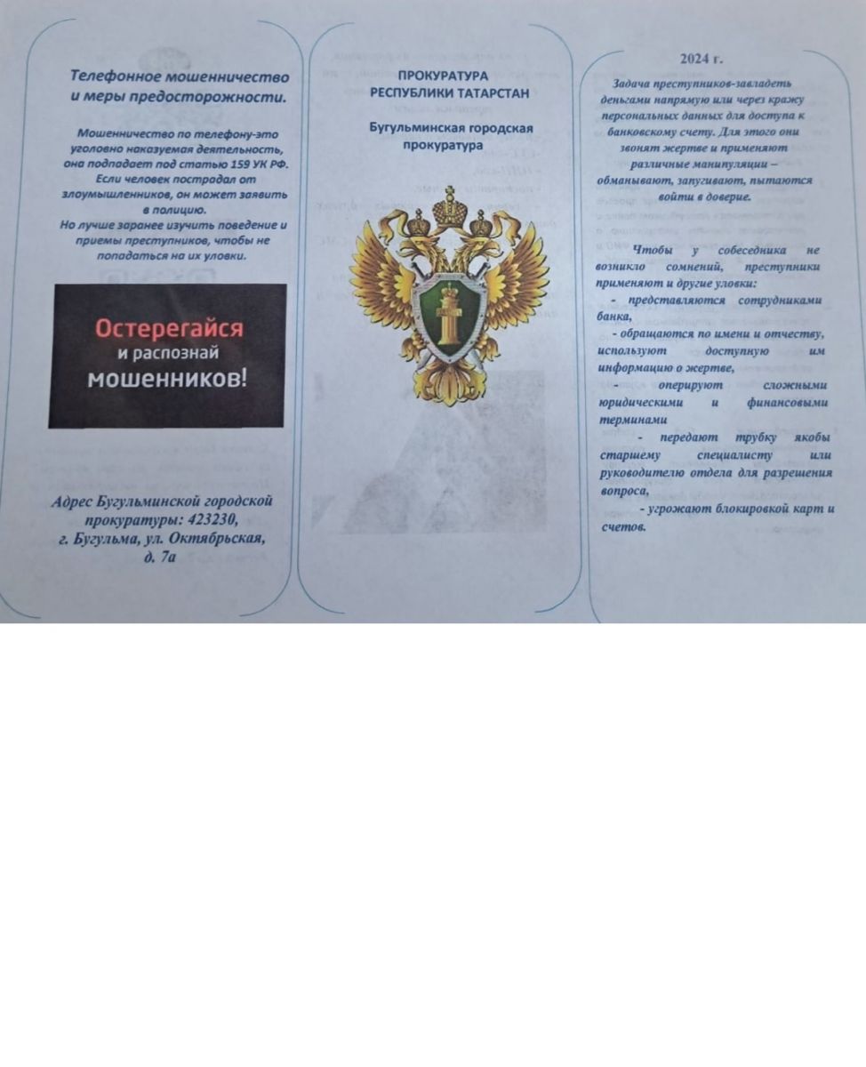 Бугульминская городская прокуратура информирует 27.11.2024