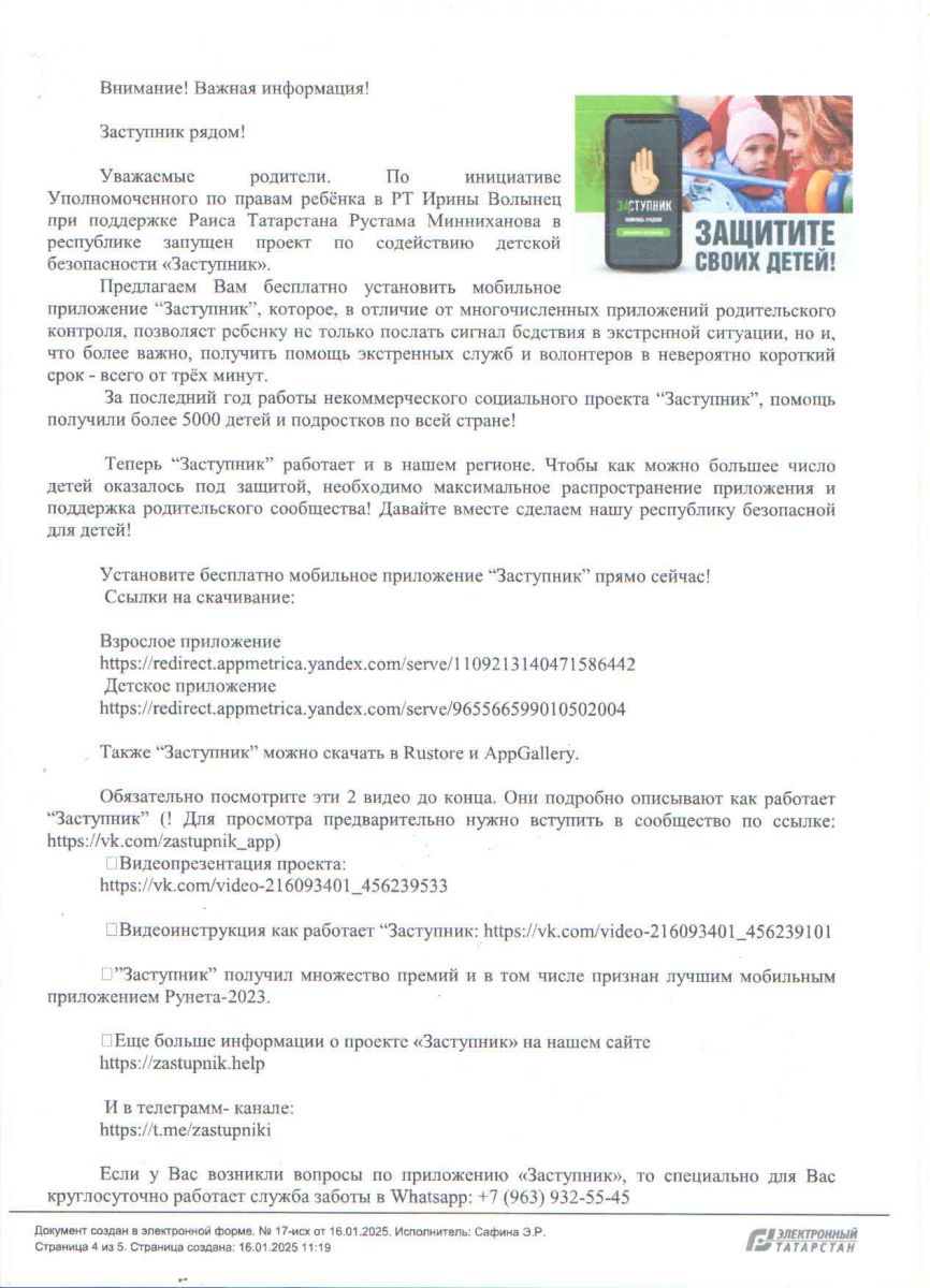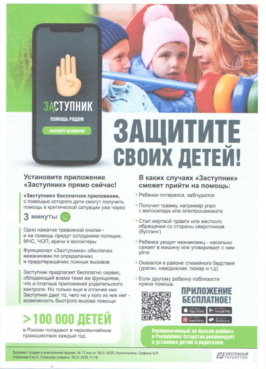 Предлагаем Вам установить бесплатное мобильное приложение “Заступник”, которое, в отличие от многочисленных приложений родительского контроля,позволяет ребенку не только послать сигнал бедствия в экстренной ситуации, но и, что более важно, получить помощь экстренных служб и волонтеров в невероятно короткий срок - всего от трёх минут.