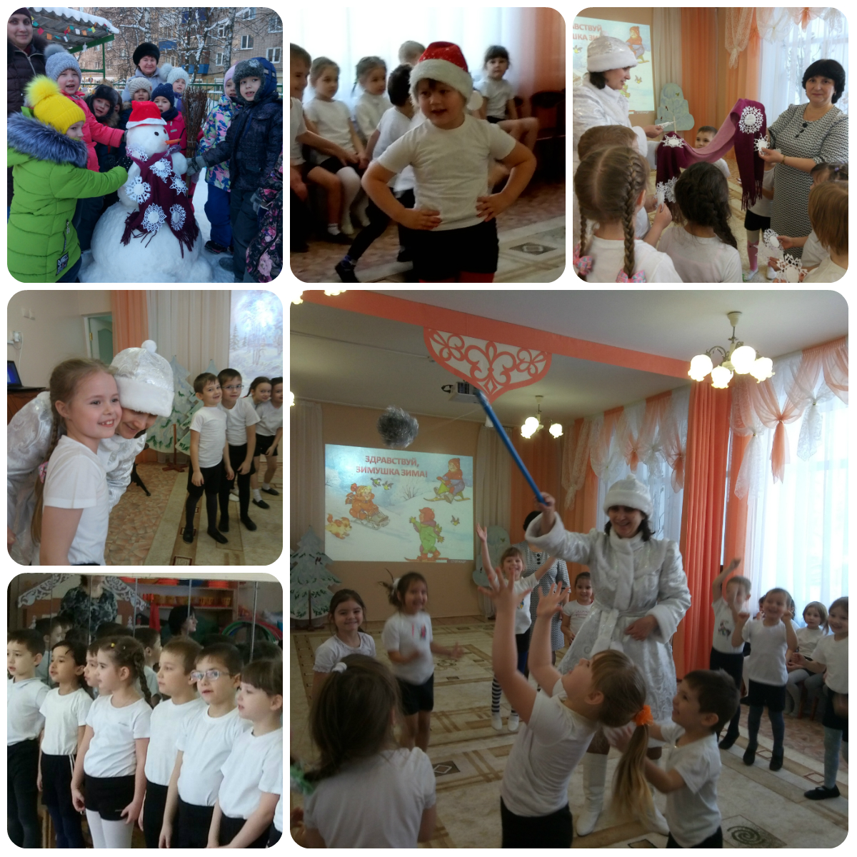 Её дети встретили песнями,стихами и хороводами. Много игр и конкурсов провела с детьми Зимушка. Всё мероприятие сопровождалось презентацией - показом слайдов об этом времени года, о зимних играх и забавах. Зимушка загадала много загадок детям и провела различные эстафеты. Затем ребята вместе с Гостьей мастерили снежинки и украшали ими шарф - подарок для Снеговика, который всех ждал во дворе детского сада!