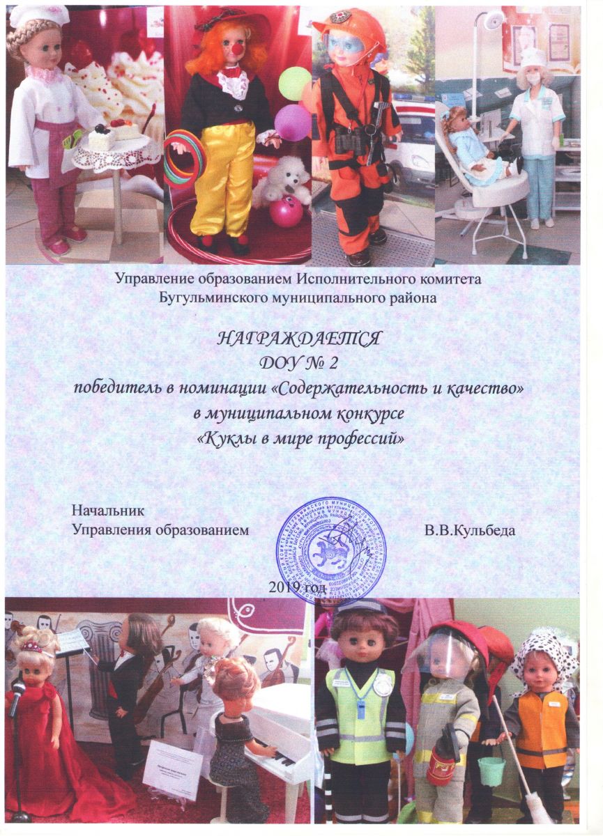 Наш детский сад стал победителем в муниципальном конкурсе “Куклы в мире профессий” в номинации “Содержательность и качество”.