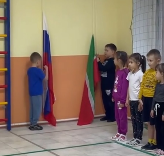 В нашем детском саду понедельник начался с торжественной церемонии поднятия Государственных флагов.
