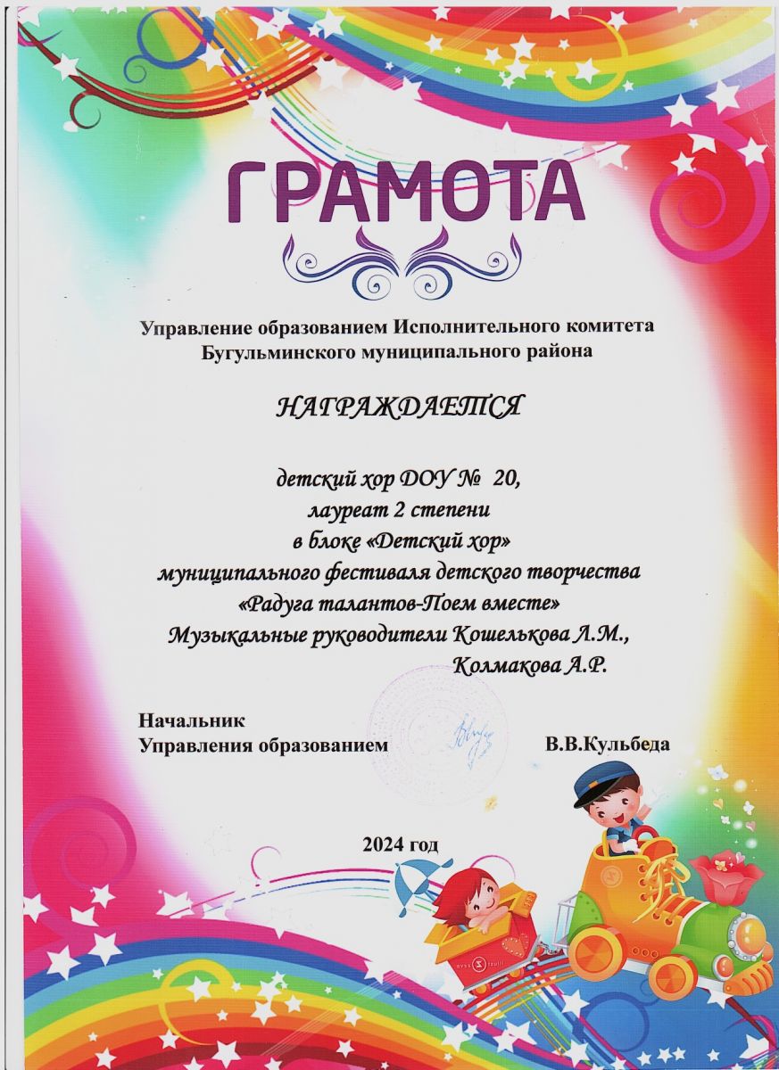 Грамота "Радуга талантов-Поем вместе". 2024 г
