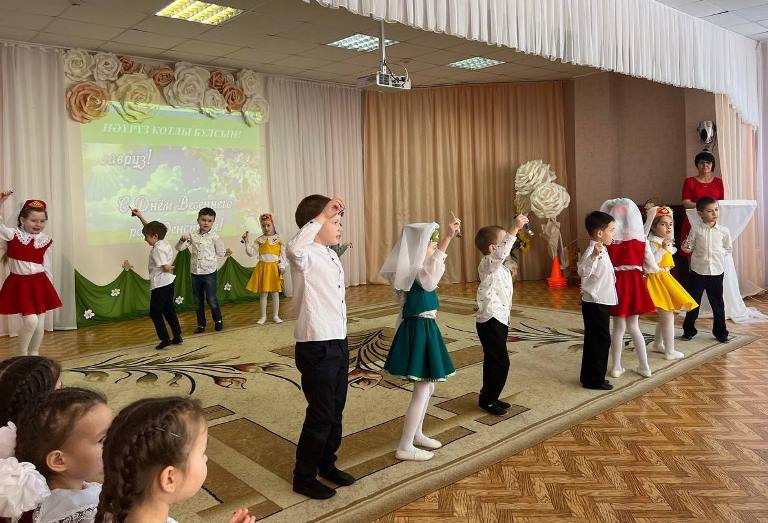 Опубликовано: 17.03.2023Сюрпризным моментом для всех стал приход главной героини Навруз, которую сыграла воспитатель татарской подготовительной группы №4 Нуреева Лейсан Халимовна. Она подготовила интересные конкурсные задания и предложила провести среди девочек соревнования на звание самой талантливой и трудолюбивой «Маленькой красавицы – Навруз». Участницы продемонстрировали сноровку и умения в играх «Көн һәм төн», «Карны эретү», а также, знания и находчивость в таких заданиях, как: «Ботка пешерү», «Гөлләр устерү». Увлекательно прошла ИКТ-игра со зрителями «Угадай птицу по голосу», где дошкольники закрепили знания о птицах родного края. В завершении праздника, юные артисты из подготовительных групп № 5 и №10 показали свои танцевальные способности, исполнив музыкальные номера «Ромашкалар», «Әйдә, дустым, биергә!».