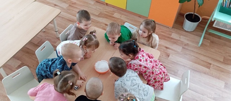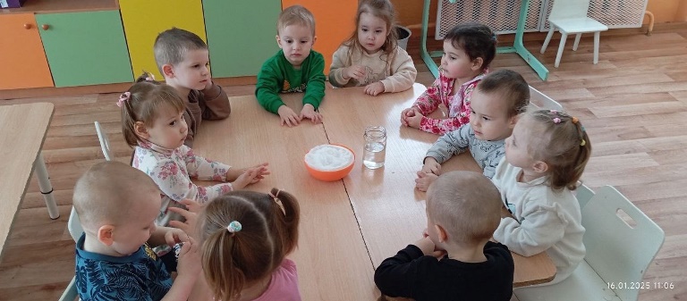 Опубликовано: 17.01.2025В первой младшей группе прошёл Замечательный день снега. Воспитатели организовали для детей увлекательные эксперементы и познавательную прогулку, чтобы познакомить их с зимними природными явлениями и свойствами снега. Воспитанники с интересом наблюдали за опытами, которые помогли им понять, каким образом снег взаимодействует с окружающей средой. На прогулке дети активно играли оставляя следы на снегу. День снега стал настоящим праздником для всех участников.