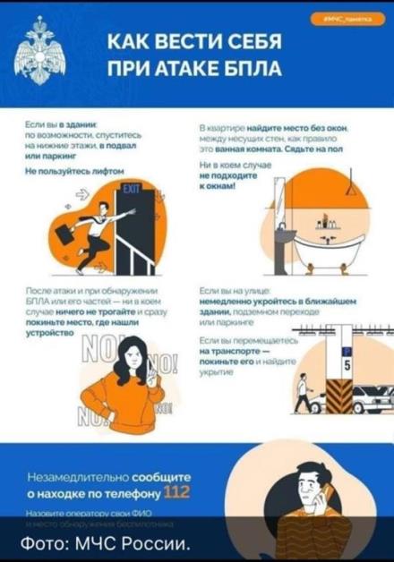 - Провести инструктаж с группами рассредоточенных детей о действиях при получении сигнала о уже летящих в непосредственной близости БПЛА, либо о работе систем ПВО.