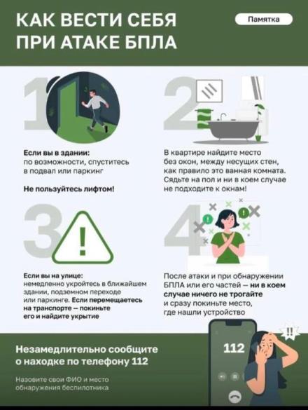 Если в момент нападения БПЛА люди находятся в здании, специалисты рекомендуют им по возможности спуститься на самые нижние этажи, в подвал и паркинг. Пользоваться лифтом нельзя!