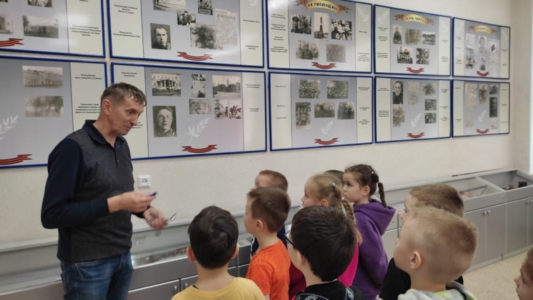 Ребята, затаив дыхание, слушали рассказ экскурсовода о Великой Отечественной войне, о героических подвигах земляков на фронте и в тылу врага, о боевых наградах, внимательно рассматривали экспонаты. Здесь представлены письма, документы, газеты, фотографии военных лет. Экспонаты музея вызвали большой интерес и восторг у детей.