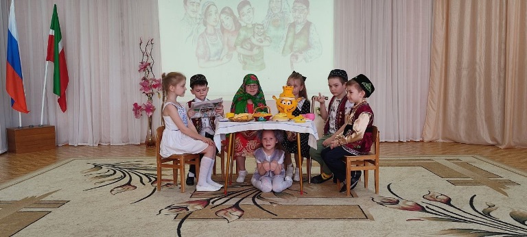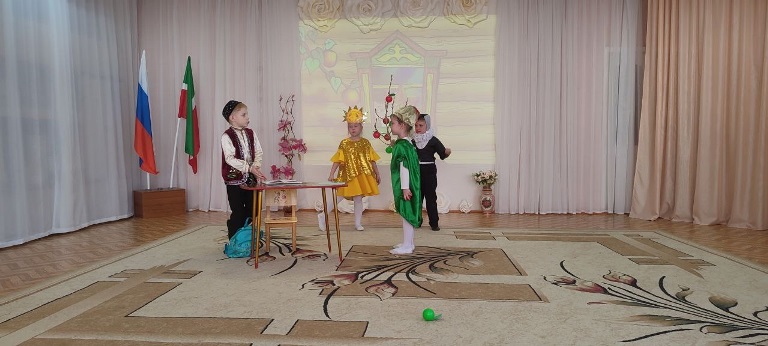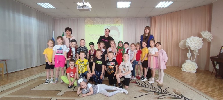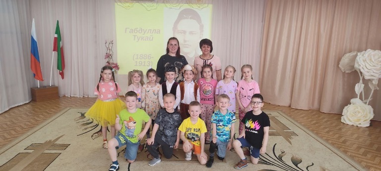Опубликовано: 24.04.2025Балаларга әдәп - әхлак тәрбиясе булдыру, авыр вакытта ярдәмгә килү, тере табигатькә, олыларга мәхәббәт тәрбияләү, тормышта кыен ситуацияләрдән чыгу юлларын табу – боларның барысына да Тукай шигырьләре һәм әкиятләре аша җиткереп була. Әгәр дә, балалар үзләре үк бу әсәрләрне сәхнәләштереп уйнасалар, бу икеләтә отышлы. Бездә быел да Тукай бәйрәме шул юнәлештә үтте. Мәктәпкә әзерлек һәм зурлар төркеме тәрбияләнүчеләре тамашачыларга Тукайның «Кызыклы шәкерт», «Фатыйма белән Сандугач», «Эш беткәч уйнарга ярый», «Безнең гаилә» шигырьләрен сәхнәләштереп күрсәттеләр. Иллюстрацияләр буенча «Су анасы», «Шүрәле», «Кәҗә белән Сарык» әкиятләрен танып белделәр. Бу чыгышлар, шул ук әсәрләргә төшерелгән мультфильмнар белән ныгытылып барды. «Тукай абыйда кунакта» тамашасы «Туган тел» җырын җырлап тәмамланды.
