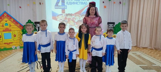 Опубликовано: 07.11.2025В детском саду прошло мероприятие, посвящённое Дню народного единства. Дети играли в игры разных национальностей, такие как белорусская игра «Пугало», русская народная игра «Золотые ворота», игра коренных народов севера «Бой медвежат».