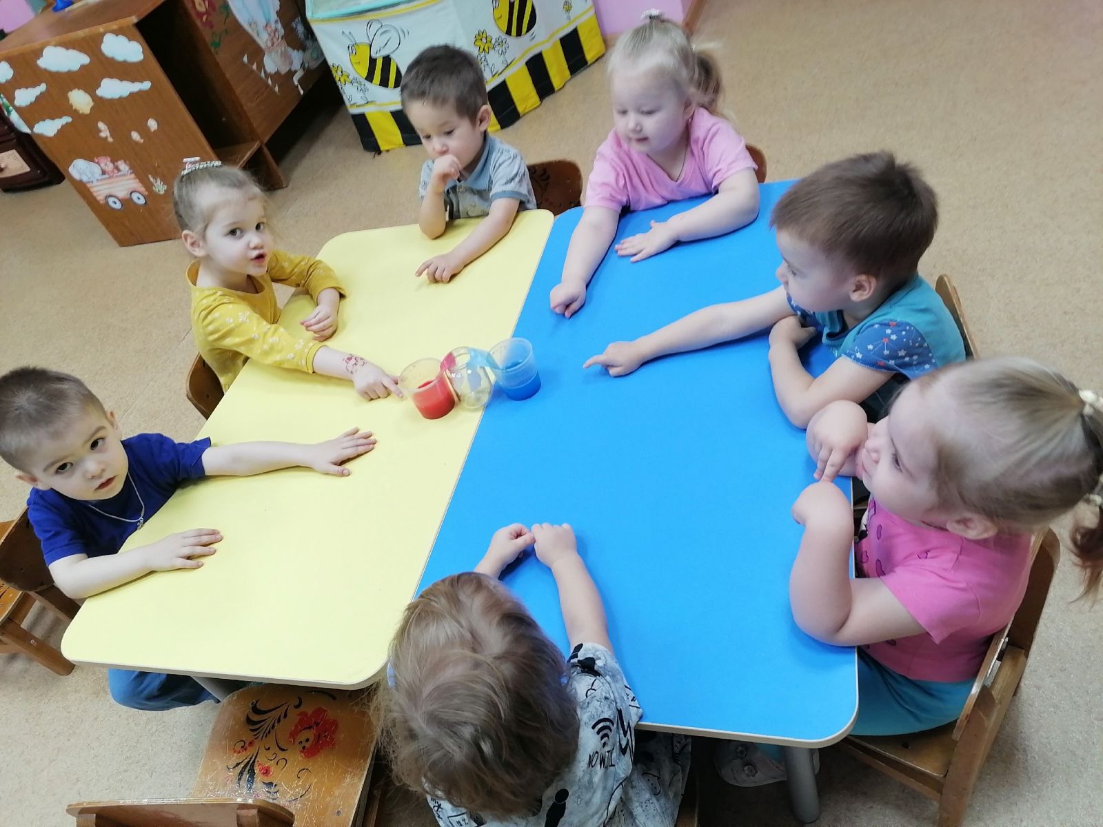 В рамках занятий "Час науки" дети 1-й младшей группы "Кояшкай" наблюдали и проводили опыт с волшебными салфетками, которые меняли свой цвет.