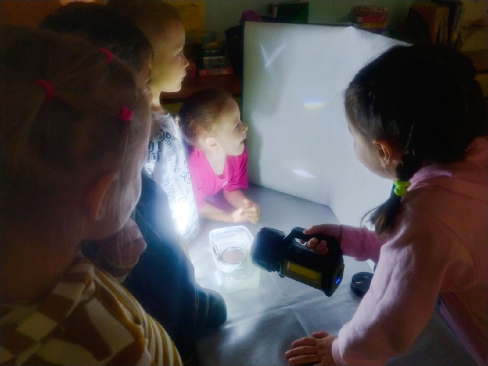 В старшей группе нашего детского сада провели эксперимент "Радуга в темноте". Дети знакомились с радугой, как природным явлением.
