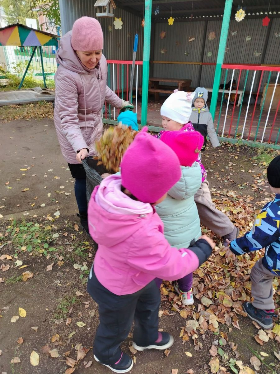 В один из таких прекрасных осенних дней воспитатели вместе с детьми средней группы "Гномики" решили устроить уборку на своём участке.