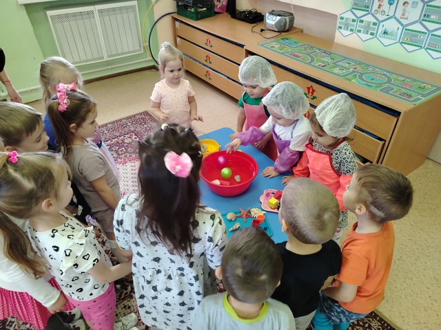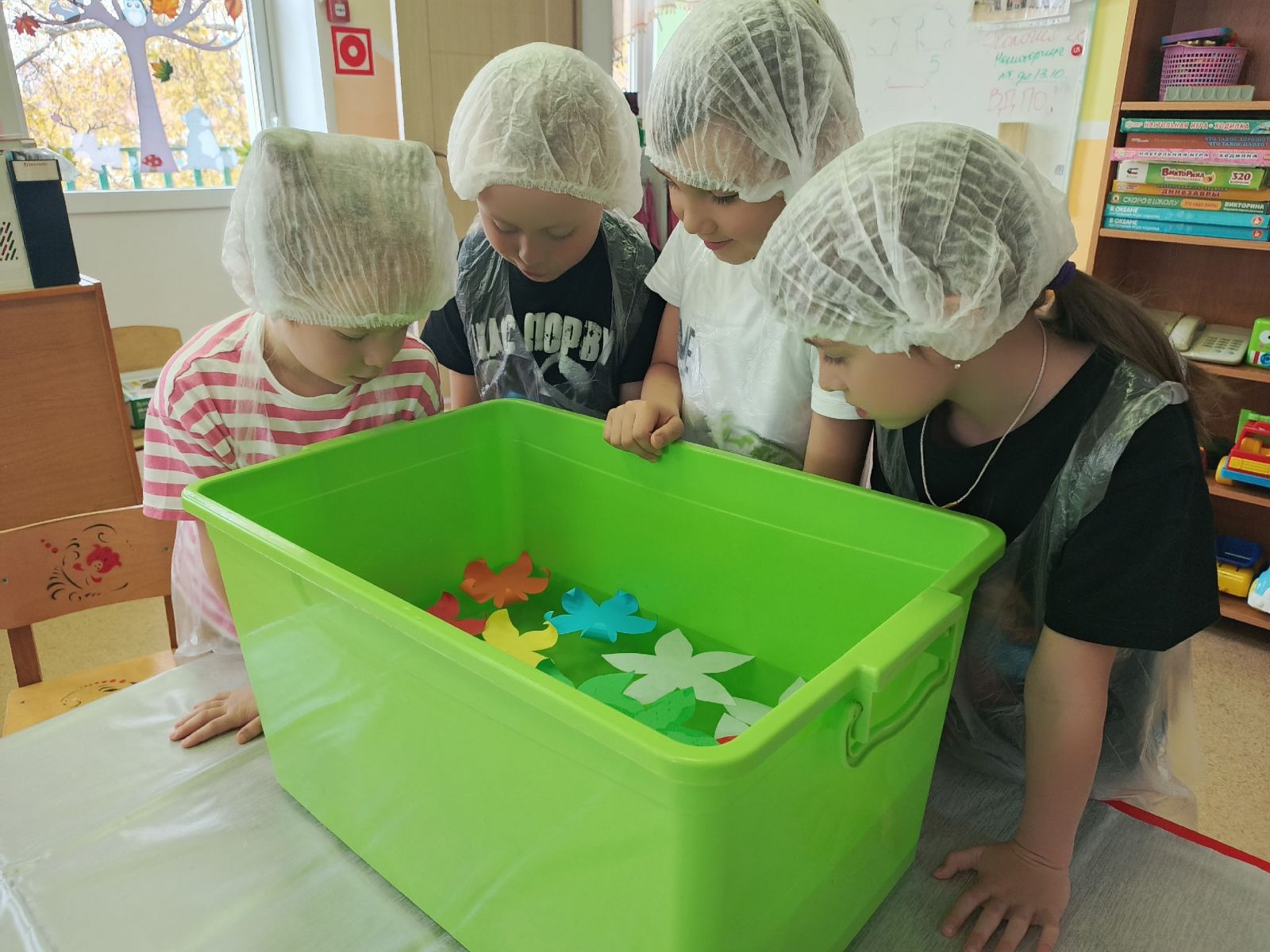 Сегодня в средней группе "Гномики" провели игру-эксперимент "Тонет, не тонет". Цель: Знакомство со свойствами предметов «лёгкий», «тяжёлый».