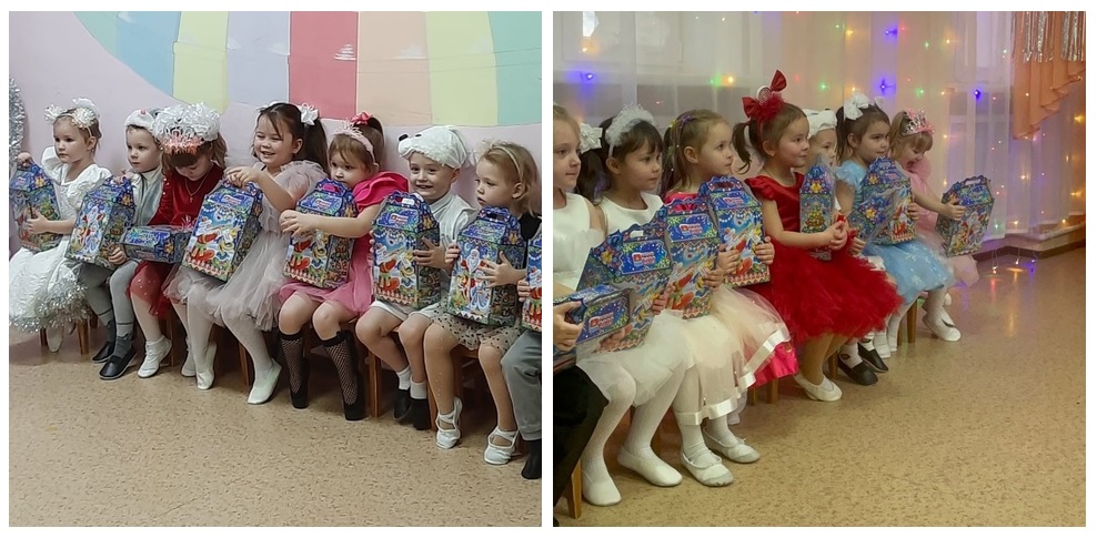 Дети танцевали, пели, рассказывали Деду Морозу стихи, водили хороводы. Долгожданные подарки из рук Деда Мороза особенно порадовали детей.