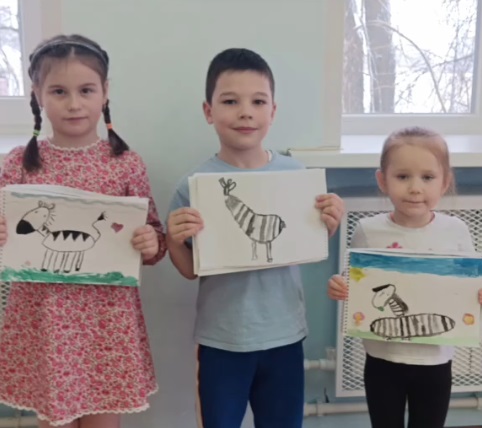 После обсуждения мы приступили к творческому процессу: каждый ребёнок смог создать свою собственную зебру. В конце занятия устроили выставку работ, где каждый мог представить своё творение. (Смотреть видео!)