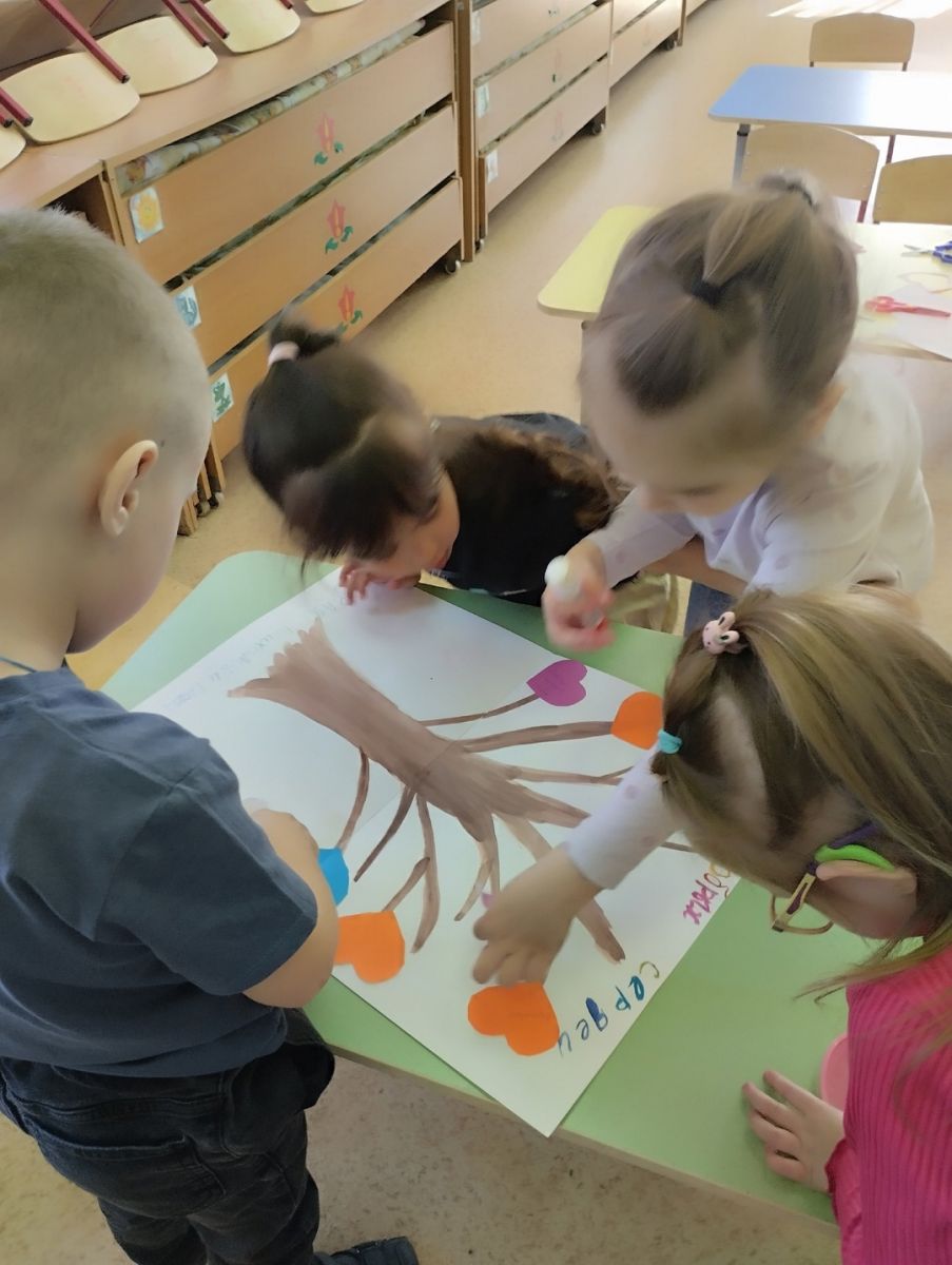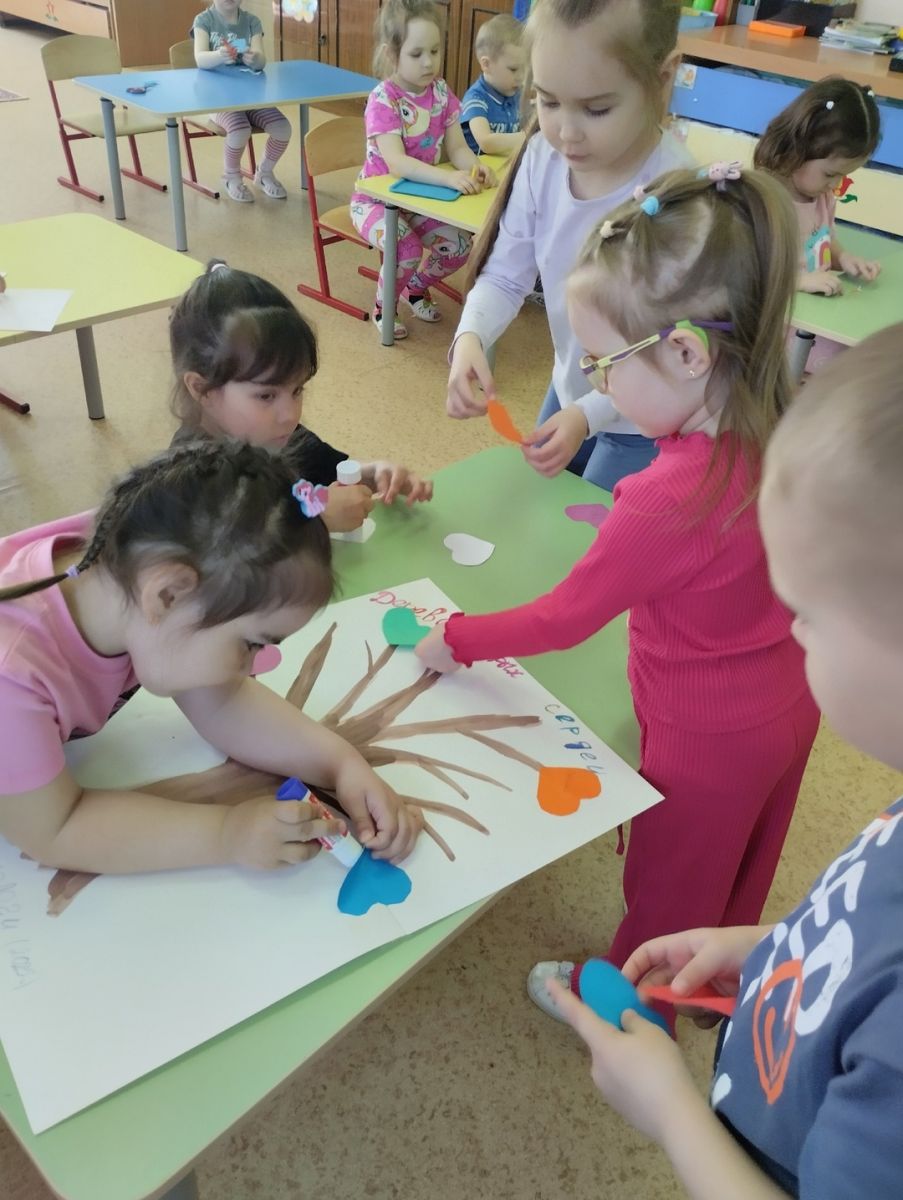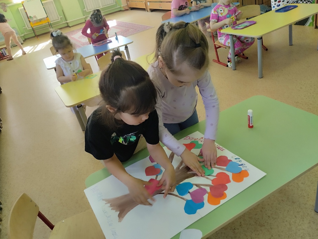 22.04.2025г. Неделя в группе "Гномики" началась с изготовления "Дерева добрых сердец".